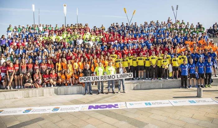 Veintisiete clubes, seis de ellos femeninos, mostraron sus credenciales para la temporada 2019. Abrió la serie de presentaciones la liga femenina y la primera tripulación en acceder al escenario fue la del Club de Remo Cabo da Cruz. Y tras patrona y remeras, un desfile sin parar en el que se nombraba a todos los tripulantes que participarán este año, muchas posando con una pancarta también significativa (“por un remo limpio”), en una acción iniciada por el Club do Mar de Bueu y que luego fue seguida por varias más, recibiendo numerosos aplausos.