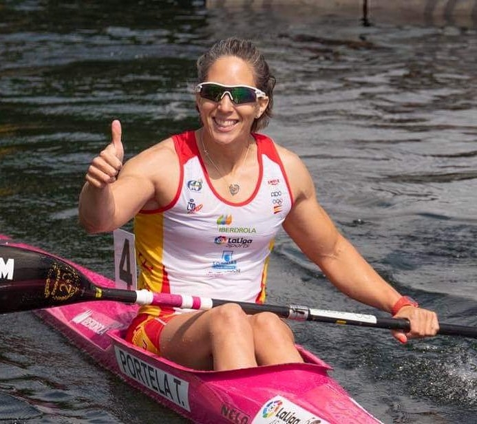 Portela, especializada en kayak y aguas tranquilas, cuenta en su palmarés con catorce medallas en Campeonatos Mundiales de piragüismo entre 2001 y 2015. También ha obtenido 17 metales en Europeos entre 2001 y 2013. Además, ha disputado cinco Juegos Olímpicos de verano entre los años 2000 y 2016, en los que obtuvo cinco diplomas. A sus 37 años lucha por ser la primera deportista española en competir en seis citas olímpicas.