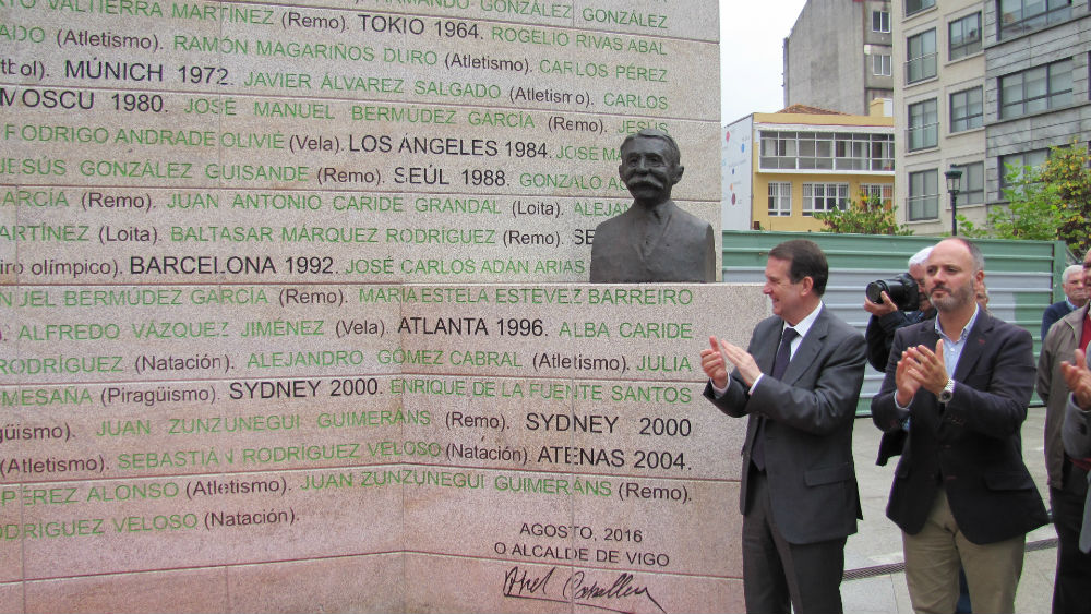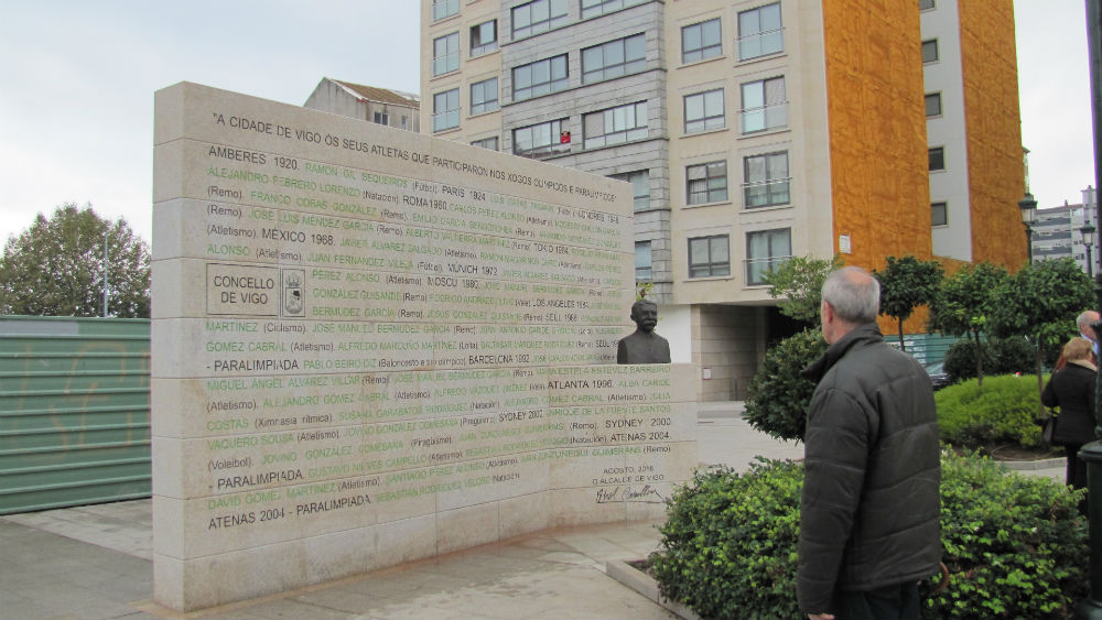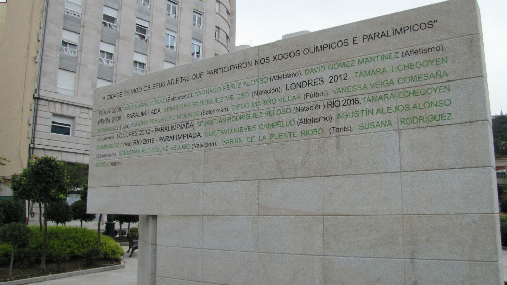 Vigo xa conta cun monumento que rende homenaxe aos seus mellores deportistas, situado na confluencia entre as rúas Rosalía de Castro e Miragaia. Trátase dun mural en pedra no que se gravaron os nomes de todos os vigueses que participaron nuns xogos olímpicos ou paralímicos. Concretamente, a inscripción reúne a 43 deportistas (34 homes e 9 mulleres), dos que 37 son olímpicos e 6 paralímpicos, nunha variedade de quince disciplinas que van desde o atletismo ao voleibol, pasando polo ciclismo, fútbol, remo, tenis ou triatlón.