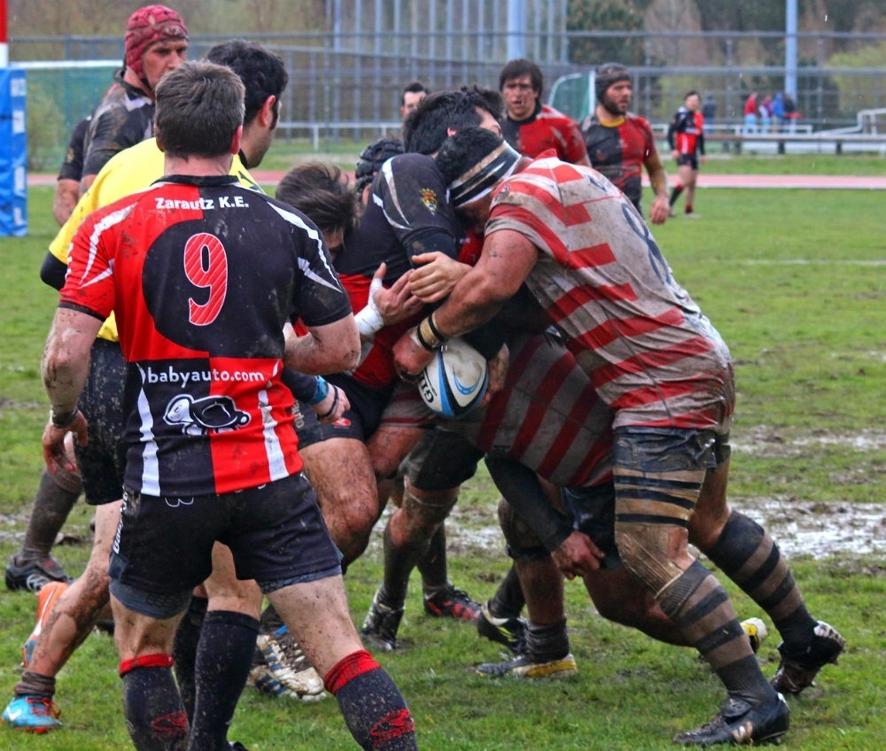 Salía en tromba el equipo vasco para anotar el primer ensayo a través de Huxford, que aprovechó un balón que quedó perdido en un ataque vigués y se escapó para posar bajo palos y dejarle la patada fácil al certero apertura argentino Panichelli. Era un 0 a 7 a los 3 minutos. A los pocos minutos era Tatafu, este domingo un arma constante del Blusens Networks Universidade de Vigo para ganar metros, el que posaba el oval con el brazo estirado, al que le sumaría los puntos adicionales Maguna para dejar el parcial en 7 a 7. No daría respiro Zarautz, con su mejor arma de touche y maul para ganar metros, que le dejarían la bandera servida nuevamente a Huxford para anotar un nuevo ensayo.