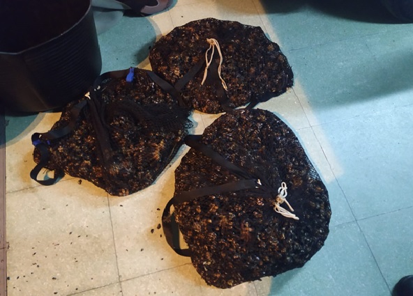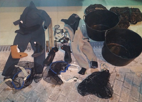 Ademais do comiso de 37 quilos de percebe interviñéronse dúas rasquetas, dúas lanternas, dous traxes de neopreno, dúas gafas de mergullo, dous capachos, dous pares de escarpíns e tres salabardos máis os que conteñen o percebe. O marisco comisado foi repartido en catro centros benéficos da cidade de Vigo.