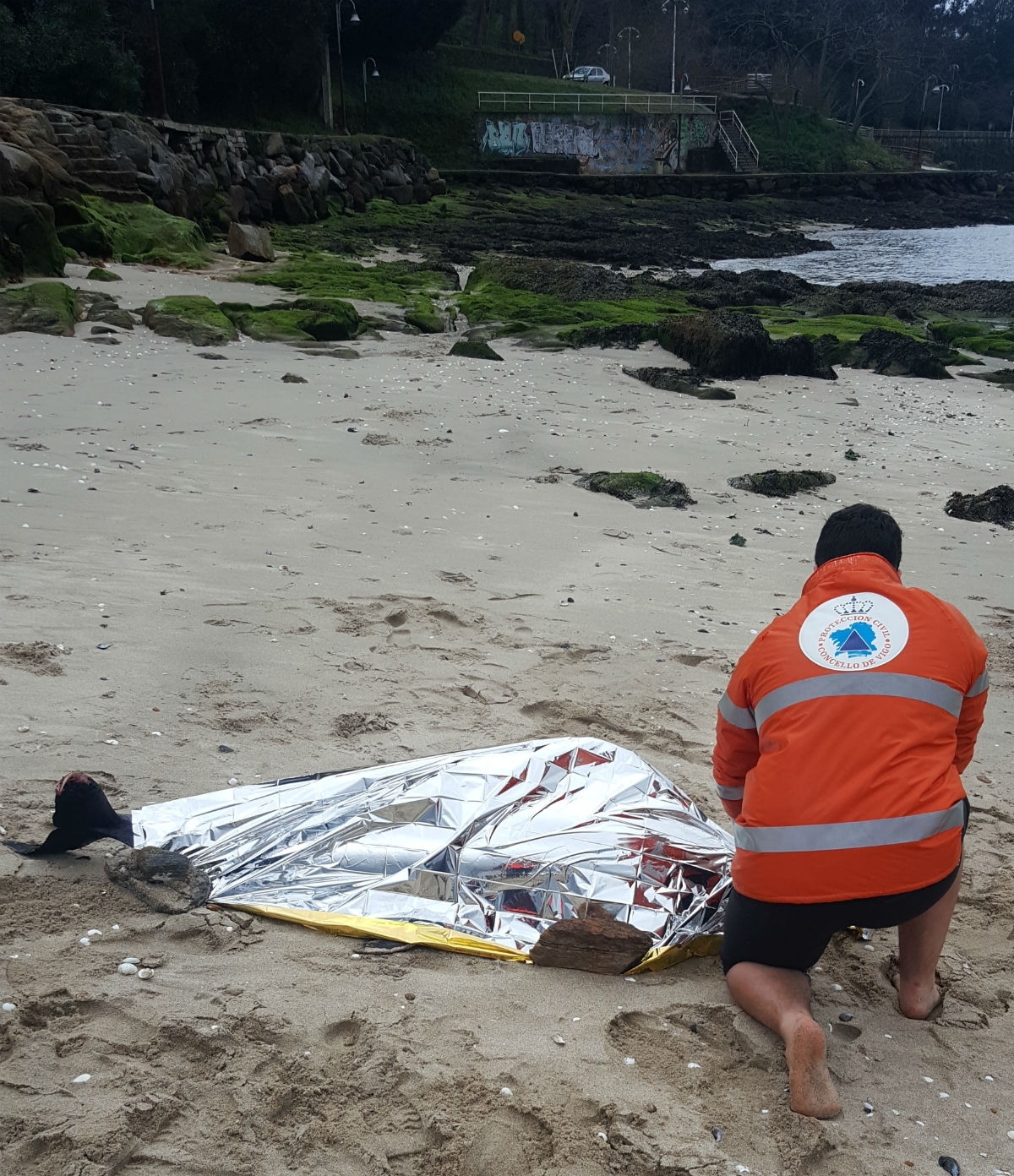 Efectivos de Protección Civil habían encontrado el animal flotando y lo sacaron del agua. Una vez en el lugar, los agentes de la Policía Local observaron que se trataba de una cría de la especie delphinus delphis (golfiño común). A continuación se activó el protocolo de actuación, dando aviso a la Coordinadora de Estudos de Mamíferos Marinos (CEMMA) para la toma de muestras y la retirada del cetáceo.