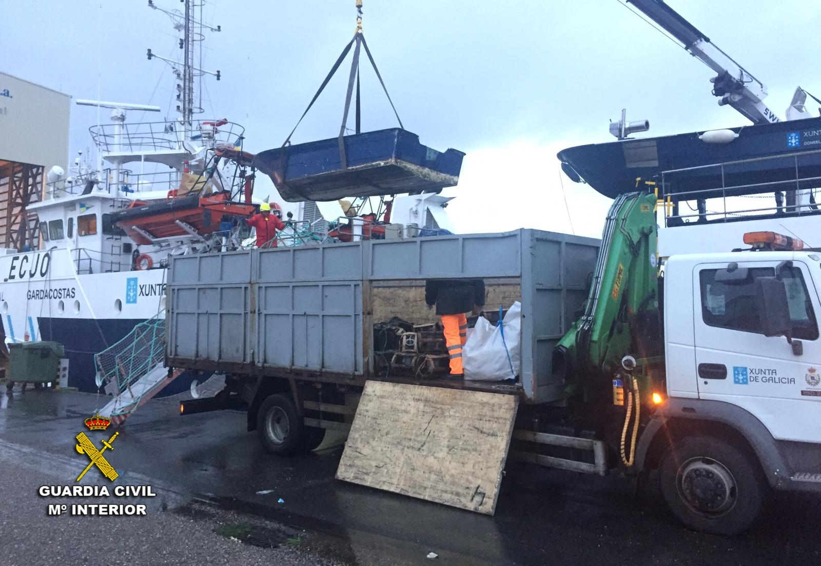 Con el apoyo y colaboración de los Guardacostas de Galicia y los Guardapescas Marítimos de la Cofradía de Pescadores San Telmo de Pontevedra, se procedió a la intervención de una de las embarcaciones con matrícula falsificada, utilizada para realizar la actividad furtiva de marisqueo, por los que a su vez se les imputa a tres de los investigados un delito de falsedad en documento oficial.