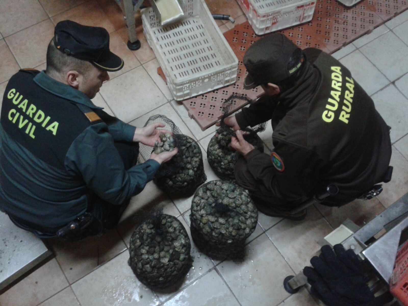 Los sacos contenían 80 kilos de almejas, de ellos 14 eran de tamaño antirreglamentario, inferior a la talla mínima exigida para su extracción, que fueron devueltos en su totalidad al medio marino.