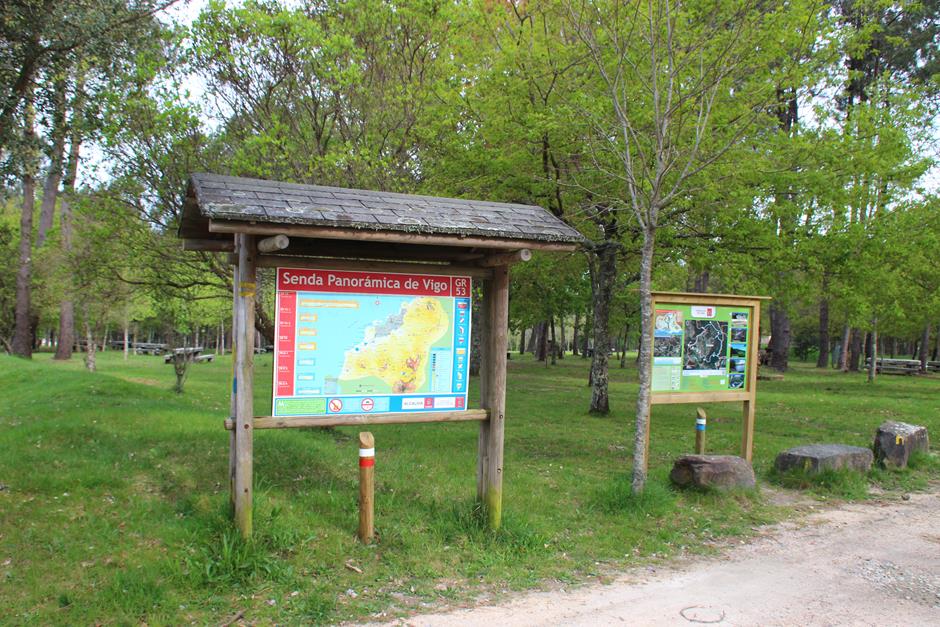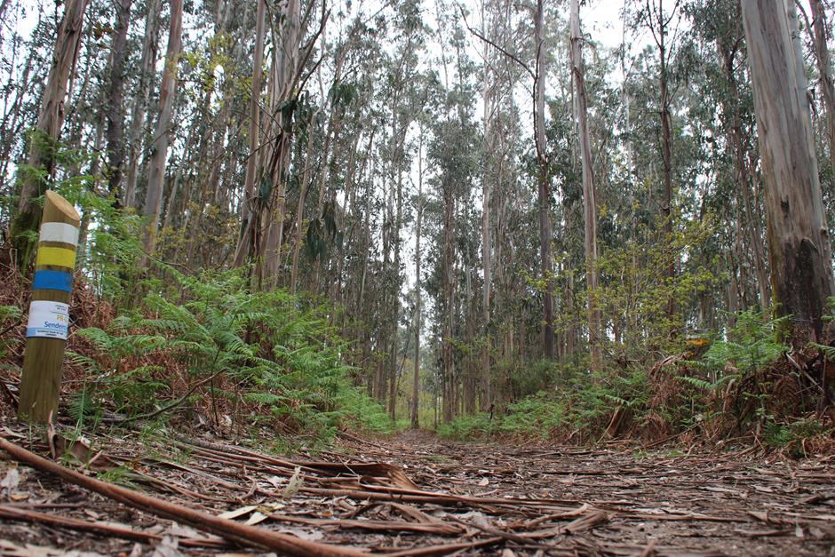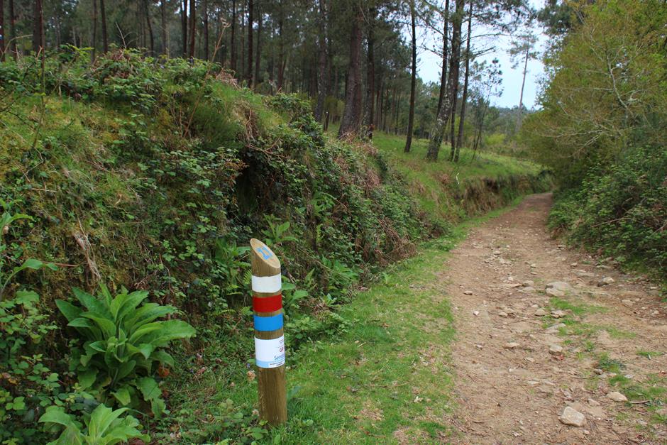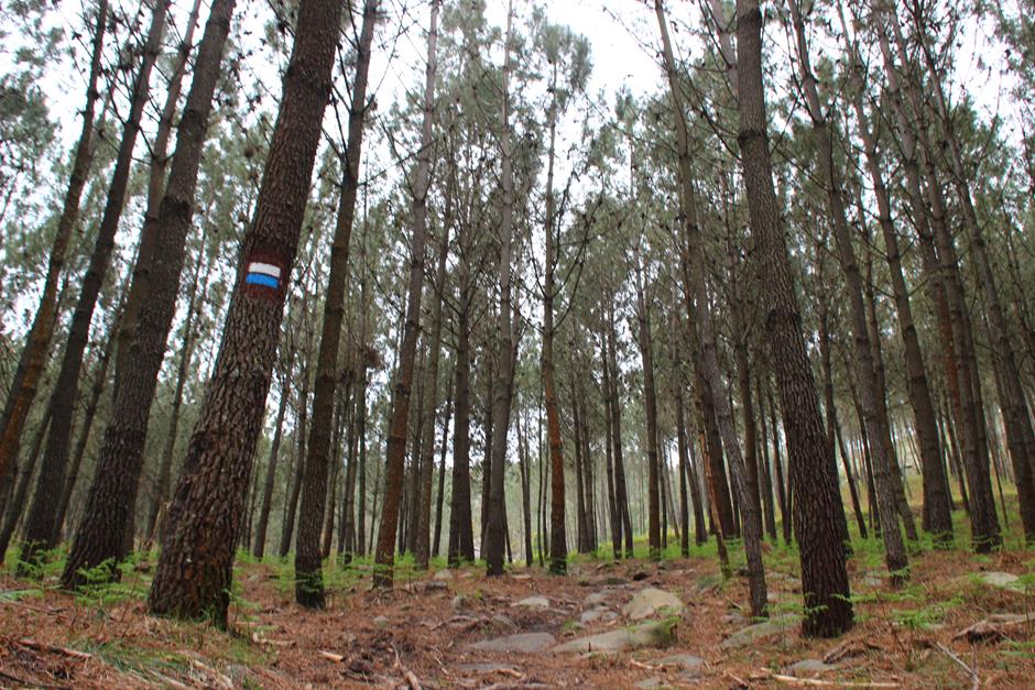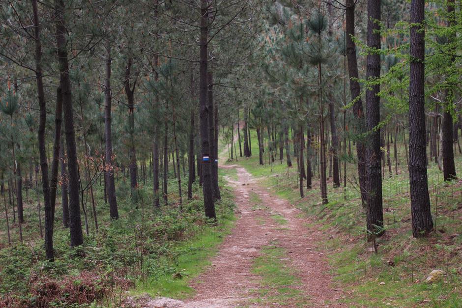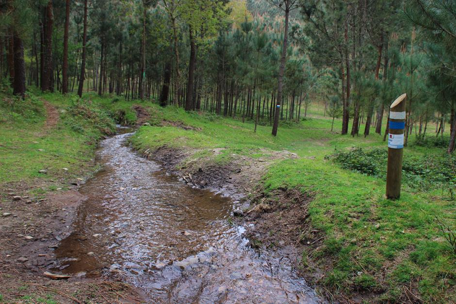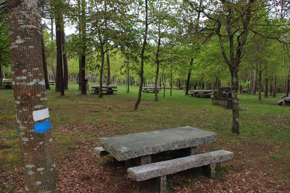 La primera parada es el parque forestal y será un buen lugar para comenzar otro día el camino o para finalizarla y después optar por utilizar las mesas para una comida campestre. A partir de ahí, el trayecto discurre entre casas de aldea, caminos de tierra, asfalto o cemento hasta adentrarse en el bosque. Varios perros pueden saludar al paso del excursionista y en medio de una subida se separa la senda local (de raya azul) del Sendeiro das Greas (la roja).