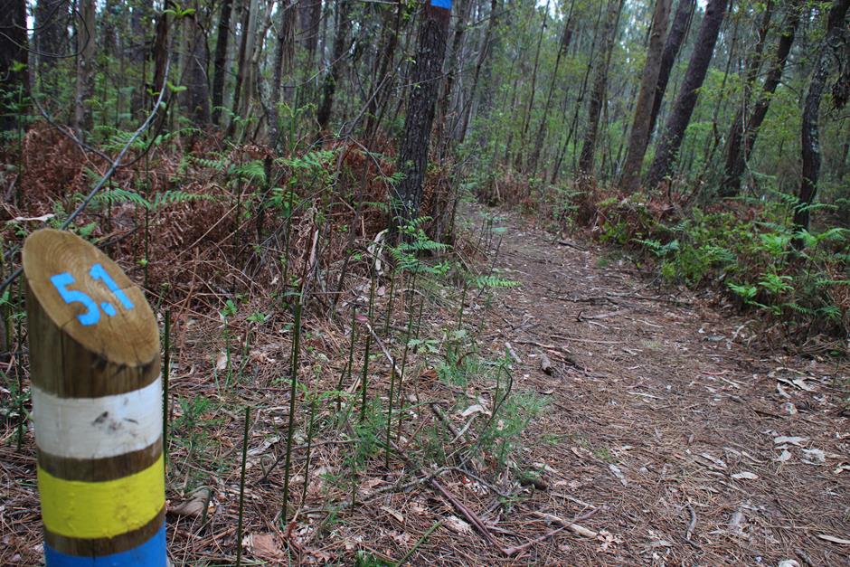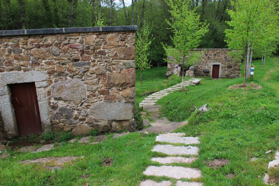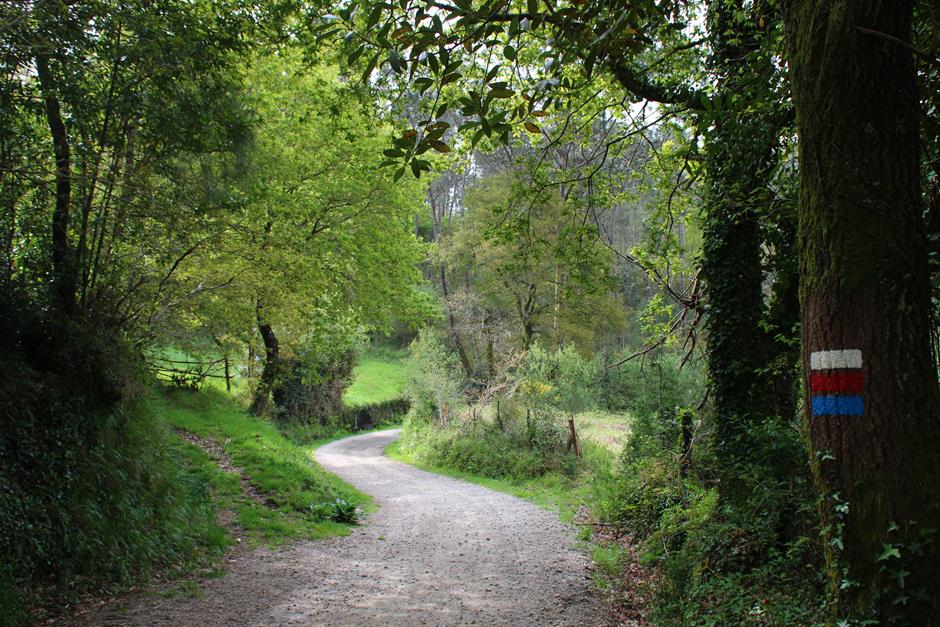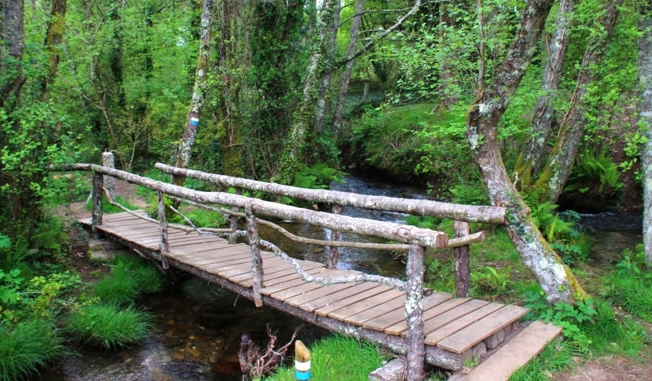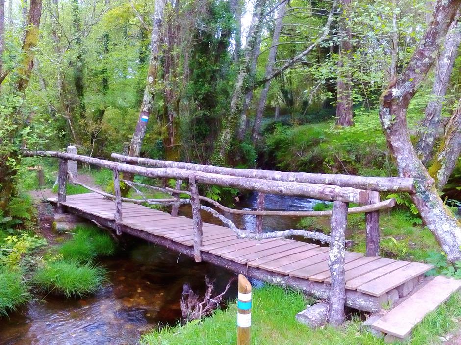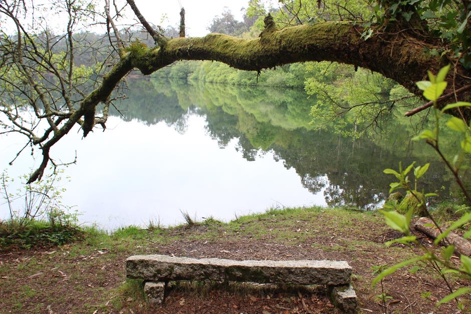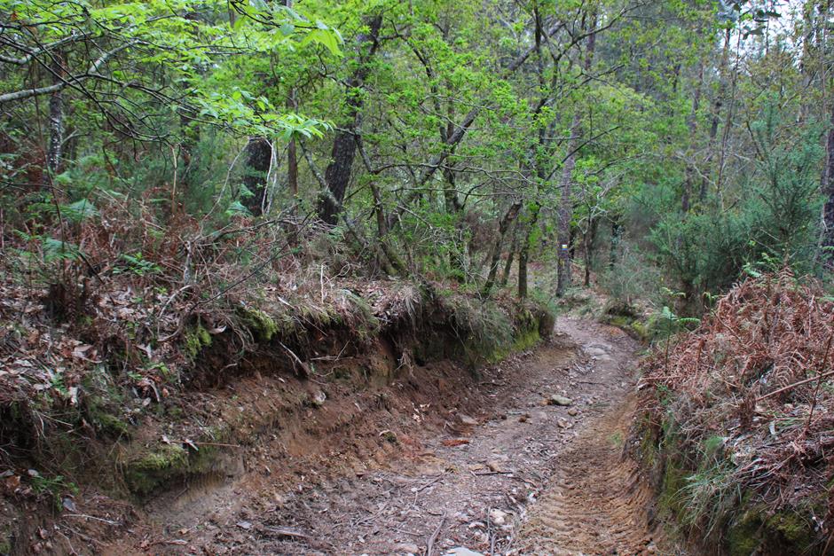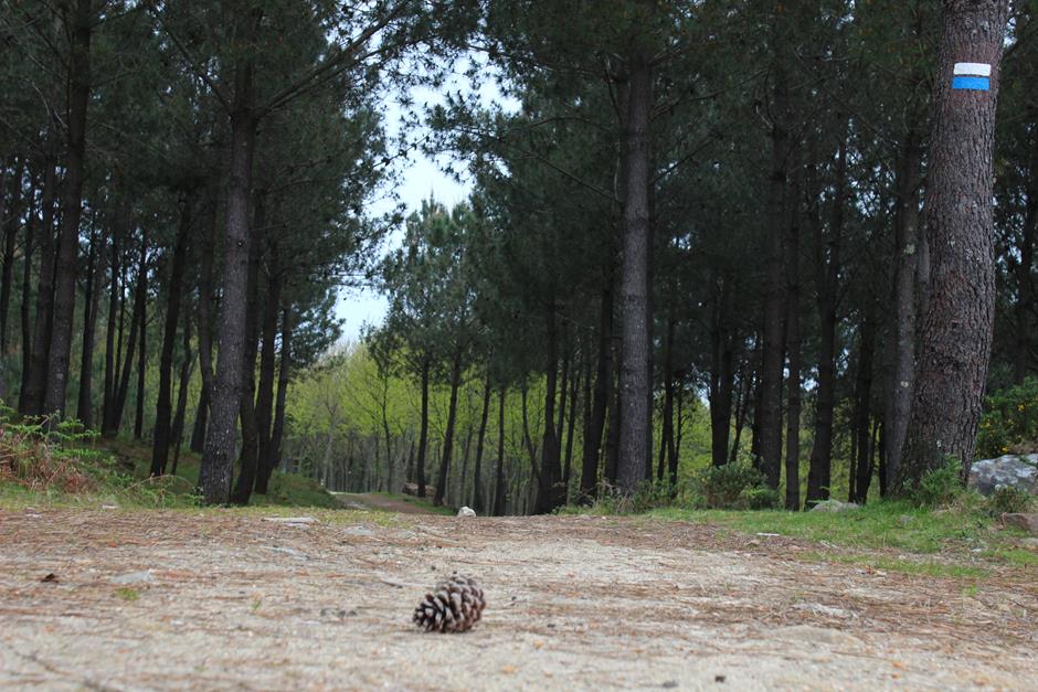 La primera parada es el parque forestal y será un buen lugar para comenzar otro día el camino o para finalizarla y después optar por utilizar las mesas para una comida campestre. A partir de ahí, el trayecto discurre entre casas de aldea, caminos de tierra, asfalto o cemento hasta adentrarse en el bosque. Varios perros pueden saludar al paso del excursionista y en medio de una subida se separa la senda local (de raya azul) del Sendeiro das Greas (la roja).