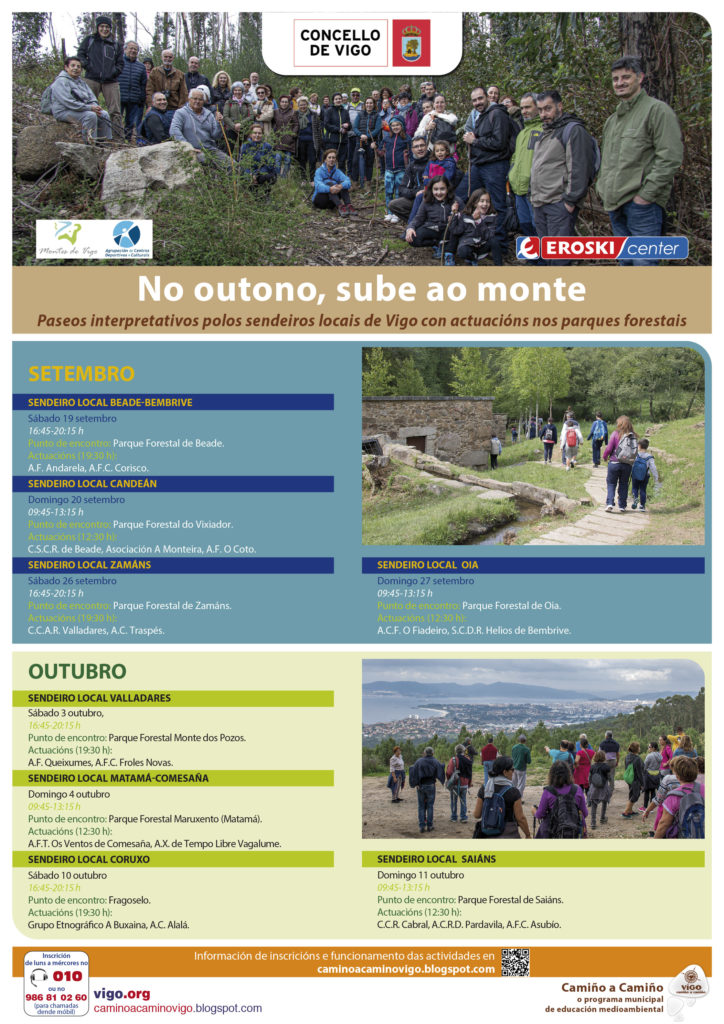 O programa ‘Camiño a Camiño’ retoma a súa actividade con novos percorridos medioambientais polos sendeiros locais dos montes de Vigo. Serán oito as rutas de balde que se realizarán entre os meses de setembro e outubro, que chegarán con dúas novidades.