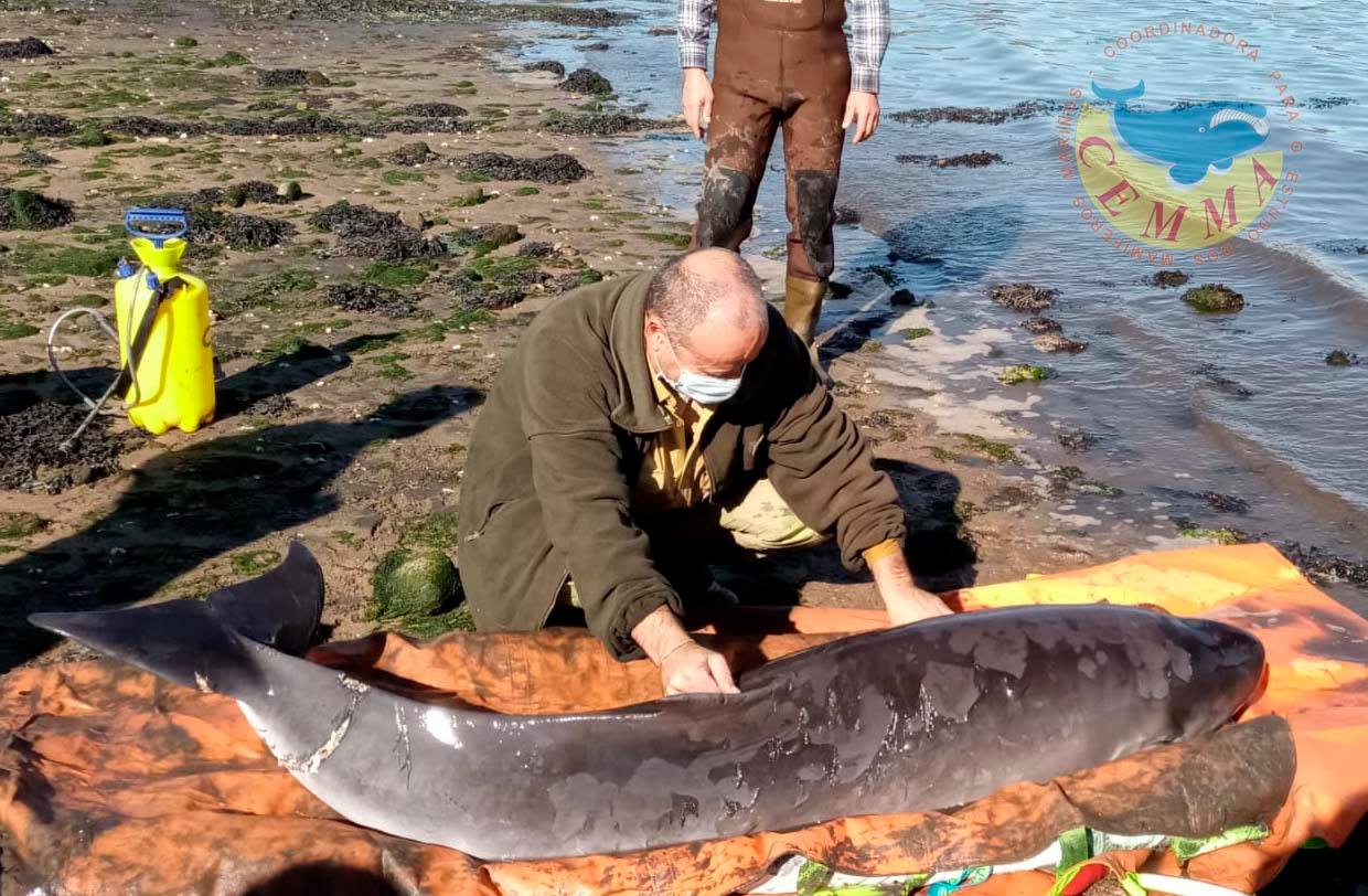 Un equipo de la Guardería de Medio Ambiente de la Xunta de Galicia y personal de la Coordinadora para o Estudo dos Mamíferos Mariños (Cemma) lograron rescatar este miércoles a un cachalote pigmeo (‘kogia breviceps’) que fue visto varado con vida en el fondo de la ría de Vigo.