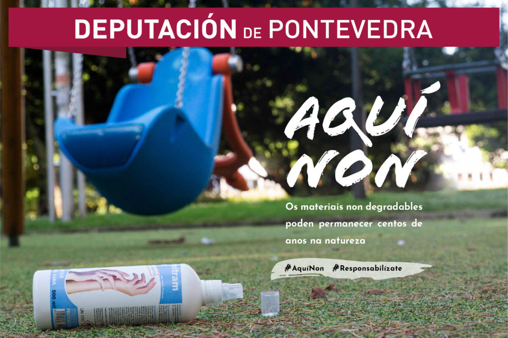 Con imaxes de impacto que mostran praias, parques e bosques onde non se pode arroxar o material sanitario, a iniciativa da Deputación lembra que as máscaras e as luvas non son reciclables e deben depositarse no colector de descarte, de cor verde ou gris, segundo o municipio. Tamén se incide en que os botes baleiros de xeles desinfectantes deben deixarse no colector amarelo xunto ao resto de envases de produtos de limpeza.