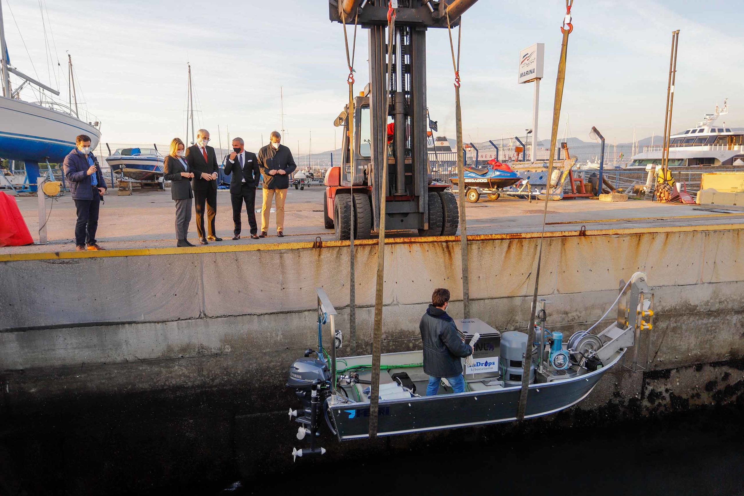La firma Industrias Ferri ha botado en Vigo un nuevo dron marino que mide la calidad del agua de la ría. Esta embarcación se destinará al control del medio marino gracias a que incorpora a bordo un laboratorio portátil para hacer una toma de muestras automatizada en diferentes puntos y después analizarlas.