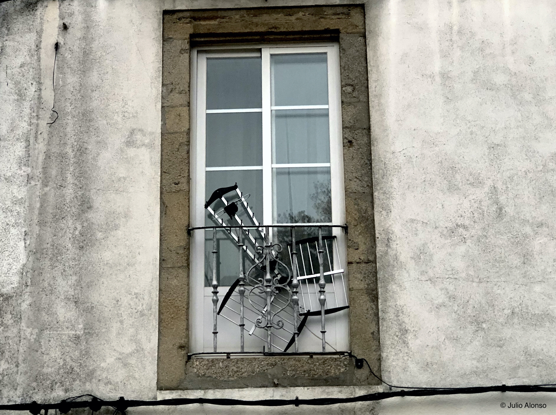 Esa antena de televisión está en el primer piso de una humilde casa de algún lugar de Galicia que mantendremos en secreto para que no se la roben, porque la casa es tan pequeña y tan bajita que la antena casi está al alcance de la mano.