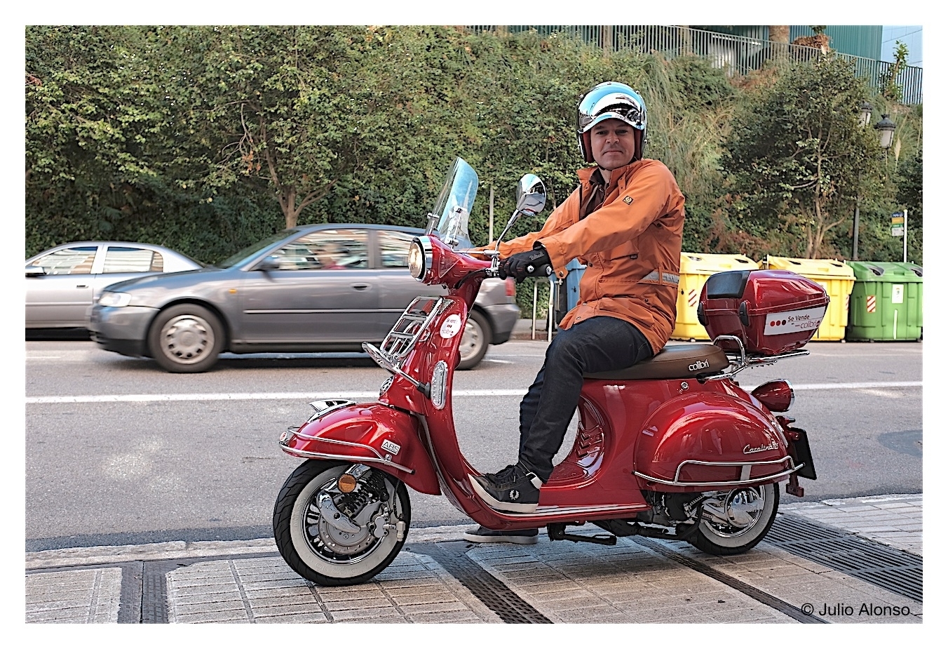 Vicente Gulías: Yo soy aficionado al mundo de la moto desde hace muchísimo tiempo. Desde los catorce años tengo moto y siempre he estado muy vinculado. A mí me causa mucha felicidad andar en moto, es uno de los mayores placeres. Siempre tuve esa afición y ese gusanillo. Al estar en contacto con este mundo acabas conociendo absolutamente todo: marcas, fabricantes, componentes, motores, etc. Entonces, ¿cómo surgió? Realmente no sé cómo surgió. De repente te ves embarcado en ese tema. Yo fui a varias ferias, varias veces, Milán, Madrid, etc. Sobre todo la de Milán, que es la más importante del mundo en el tema de la moto, y en el scooter muchísimo más. Osea, la moto es italiana. El scooter en sí es italiano. Entonces de ahí surgieron una serie de contactos y surgió la posibilidad de llevar una moto con mi idea, a mi gusto, y personalizada como nosotros queríamos. Vi un hueco de mercado para algo que está muy de moda en otros sectores, pero no en este. Así como en Alemania, Francia, Brasil, México…, vi que había marcas especializadas en el mundo vintage, en España no. Es decir, que cada marca tenía a lo mejor un modelo: Peugeot su modelo; Vespa, por supuesto, porque es la que manda; Lambreta, que ahora parece que vuelve; Sem también tiene su modelo vintage… Pero una marca exclusivamente especializada en el mundo vintage no existe. Y yo quise crearla. Ideé, por ahora, tres modelos, de hecho están ahí en la recámara dos más, hasta completar hasta los cinco. Son tres modelos con aire claramente retro, vintage.