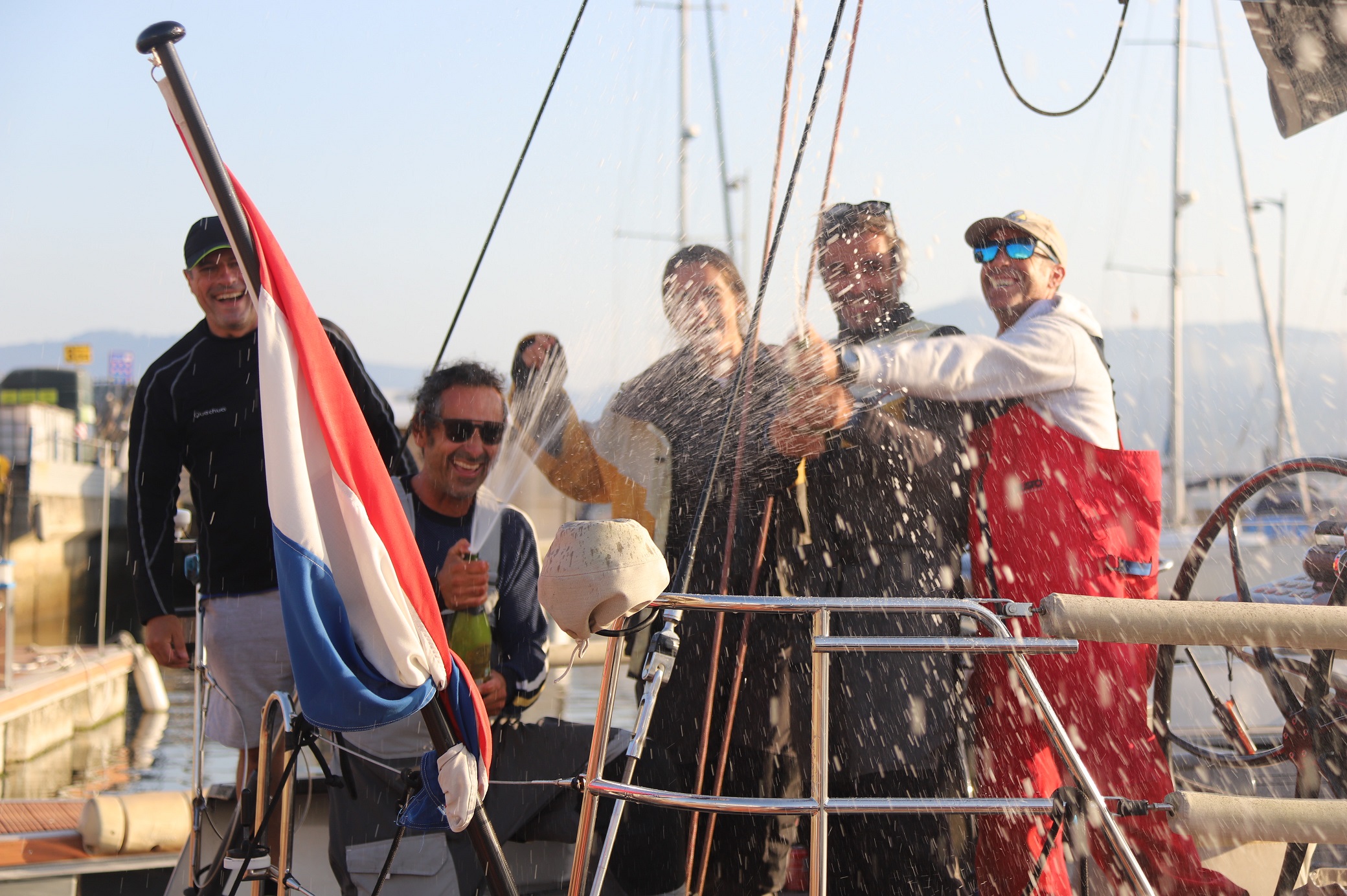 En esos momentos el grupo perseguidor estaba en aguas del archipiélago de Ons, y además con poco viento. Producto de ello… el segundo en llegar en tiempo real era «Bosch Service Solutions» del Club Marítimo de Canido con el gran Chuny Bermudez a la caña (con el que navegó su hijo) a nada menos de cerca de cinco horas… ¡a 04.43.18!… la victoria del espectacular barco de Quintero, era un hecho.