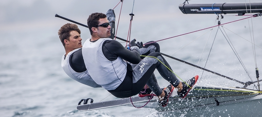En Nacra 17 Fernando Echávarri y Tara Pacheco han comenzado en aguas británicas a las puertas del podio. La tripulación gallego-canaria ocupa la cuarta posición después de un 15-8-1-4 y están a un solo punto del podio, que cierran los alemanes Paul Kohlhoff/Carolina Werner. Lideran la tabla los canadienses Luke Ramsay/Nikola Girke.