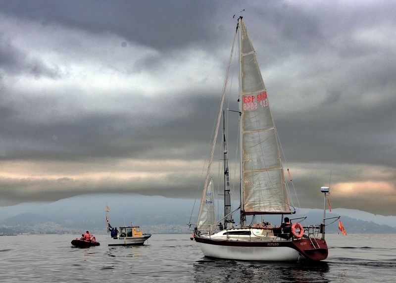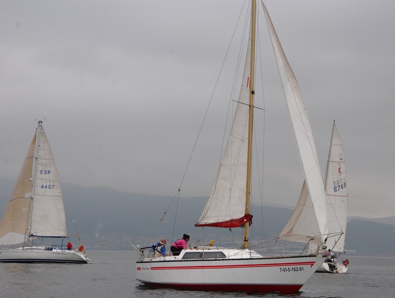La llegada al Liceo Marítimo de Bouzas se realizó de forma escalonada. Los primeros salieron a competir desde la primera milla. Otros se conformaron con seguir la estela. Todo ello bajo la supervisión el Comité de Regatas y la embarcaciones de apoyo por si aparecía algún problema inesperado.