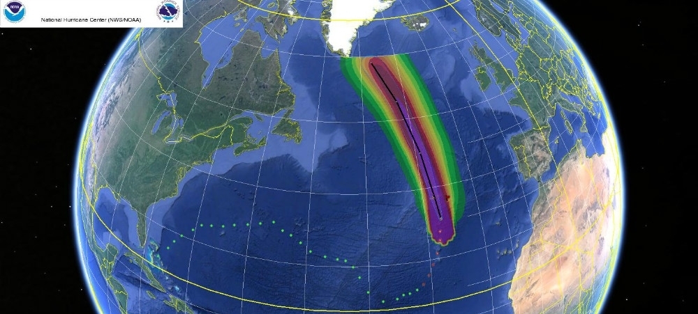 La predicción de la NOAA (National Hurricane Center) indica que mañana el huracán “Alex” llegue a las islas de las Azores, con más intensidad de viento, y las barrerá hacia el norte/noroeste en dirección Groenlandia, que está a unos 2.600 km. más al norte.
