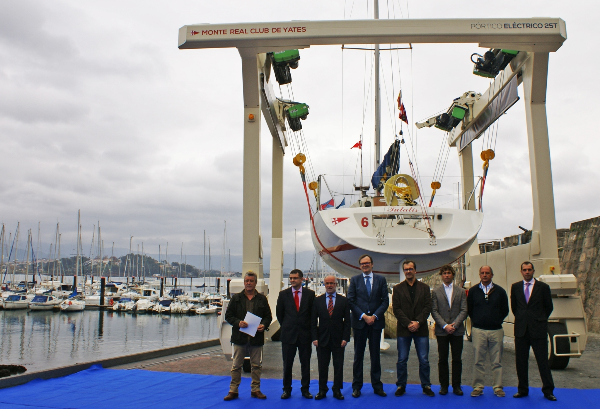 El proyecto de desarrollo de la máquina y su posterior construcción lo pilotaron los ingenieros Miguel Riveiro, por parte del club baionés, y Oscar Riera, de Yacht Port Marinas. La grúa pórtico eléctrica, que tiene capacidad para levantar embarcaciones de hasta 25 toneladas, comenzó a funcionar este mes de noviembre en la marina del Monte Real Club de Yates.