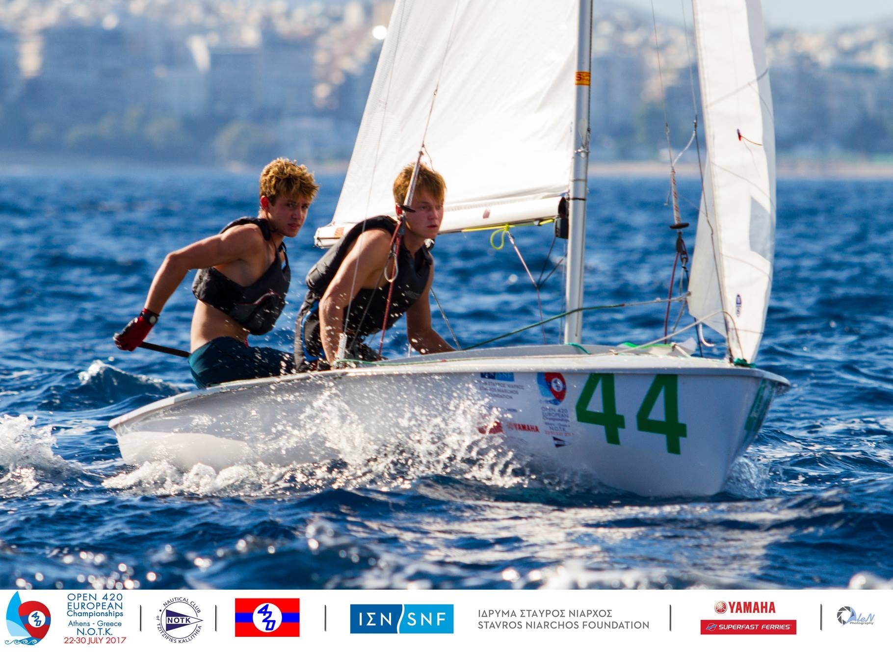 Martín Wizner y Pedro Ameneiro, nuevos subcampeones de Europa sub-17 de la clase 420 con el Náutico de Vigo en aguas griegas