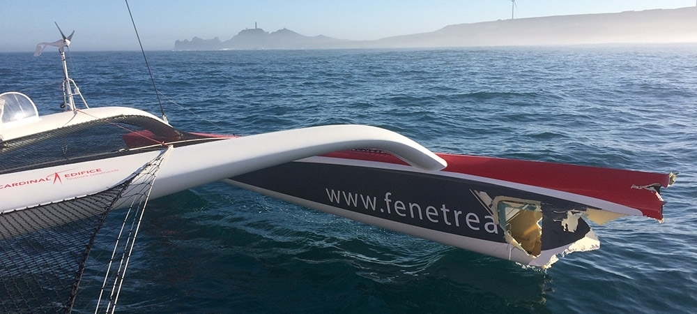 La grave avería en la parte de proa del flotador de babor, que afectó a varios metros del mismo, obligó a su patrón Ewarn Le Roux a buscar un puerto seguro antes de que las condiciones meteorológicas en la zona de Fisterra se complicasen. Además de evitar ser un obstáculo para el intenso tráfico marítimo y pesquero.