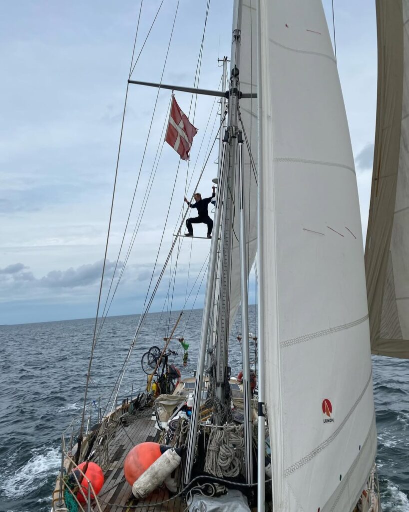 En sus breves días de estancia (apenas unos cuantos antes de continuar rumbo sur), el Oihonna ha explorado el archipiélago con la curiosidad de un cartógrafo renacentista. Han realizado dos caminatas memorables hasta el momento. La primera, al faro de Monteagudo en la Isla do Faro, les ha dejado una huella imborrable. «Fue realmente genial y logramos hacerlo antes del primer ferry del día, así que estábamos completamente solos en la ruta», relatan. Imagina el silencio absoluto: el rumor de las olas contra las rocas, el viento salino azotando las dunas, y un grupo de nórdicos, curtidos por mares más hostiles, deteniéndose a contemplar un horizonte que parece pintado por Turner. Estas caminatas no son meros paseos; son rituales de conexión con un paisaje que, en palabras de la tripulación, «choca» por su pureza intacta.