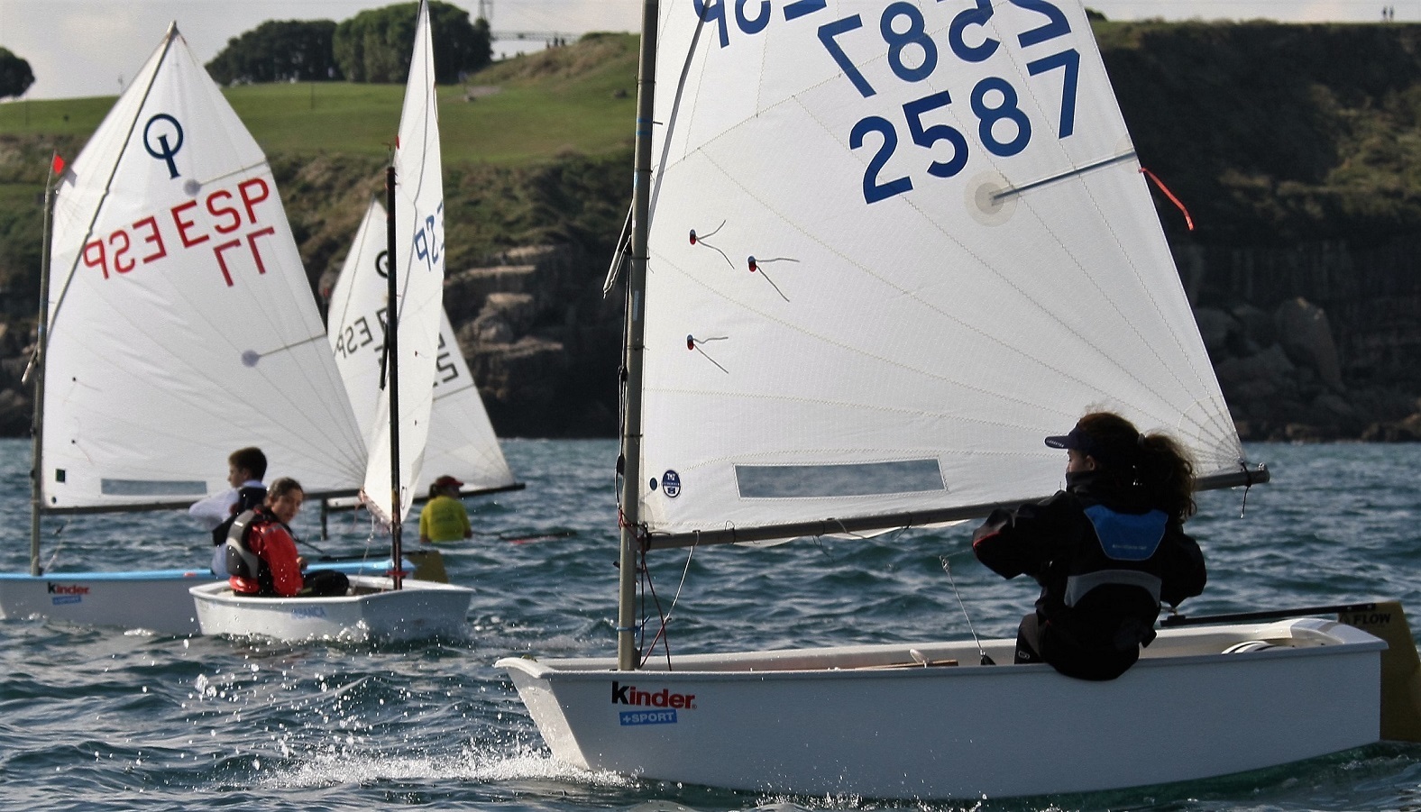 Vientos de hasta 15 nudos del nordeste y mar llana propiciaron que la Bahía de Gijón fuera un campo de regatas excepcional en la jornada inaugural. En la primera manga de las tres celebradas, vencía con autoridad Costa, por delante de Olabarri y del vigués Mario Soares, del Club Marítimo de Canido, que mostraba sus credenciales. Por su parte, Adriana Pérez Canal, un valor en alza que progresa a pasos agigantados, se imponía al gran favorito, al catalán Arnau Gelpí, aunque pagaría en puestos por el cansancio, ante el aumento de viento.