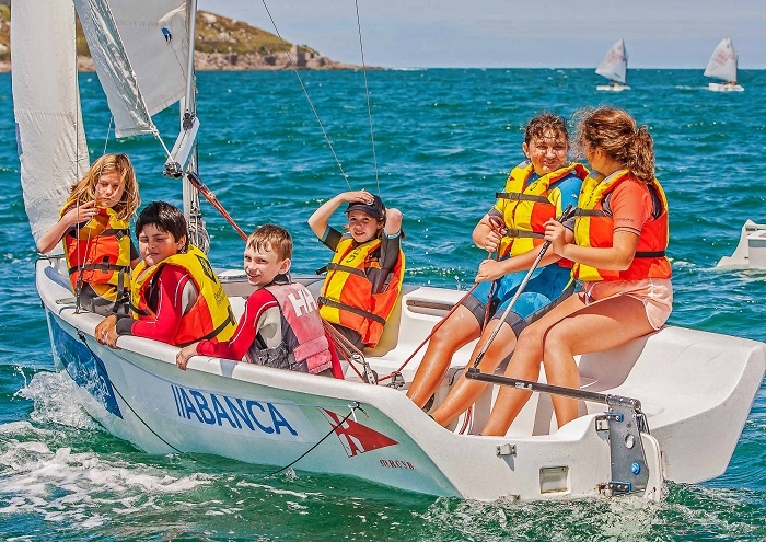 Para los más pequeños de la casa, con edades comprendidas entre los 7 y los 16 años, el club baionés organiza Cursos semanales de vela ligera, en horario de mañana o de tarde, para que los niños puedan tener un primer contacto con la navegación o mejoren su técnica con diferentes tipos de barcos en el caso de que ya sepan navegar.