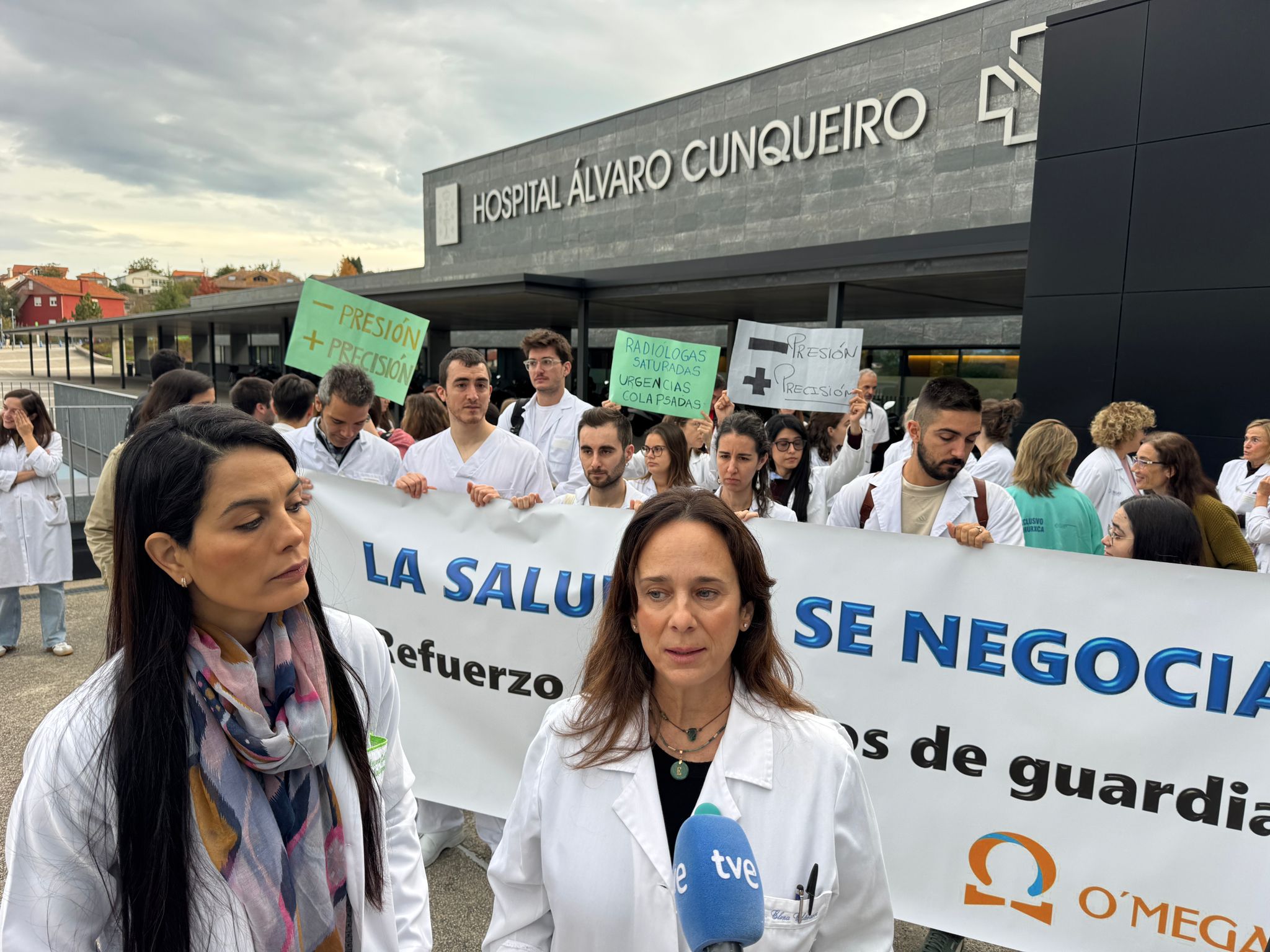 Los radiólogos del Álvaro Cunqueiro -en huelga indefinida desde el pasado 6 de octubre- hacían un llamamiento al personal sanitario del resto de hospitales gallegos para que se concentrasen este martes como muestra de apoyo a su reivindicación.