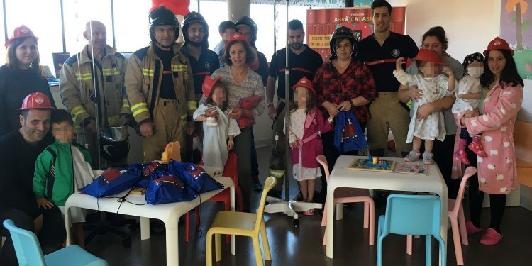 Unha vez no interior fixeron entrega aos nenos e ás nenas, dunha bolsa na que había unha réplica dun casco de bombeiro, así como pinturas e libros para colorear que fan referencia ás pequenas emerxencias que se poden producir nun fogar e o que se debe facer neses casos. A visita estendeuse tamén ao Hospital de Día Pediátrico e a sala de espera das Consultas de Pediatría.