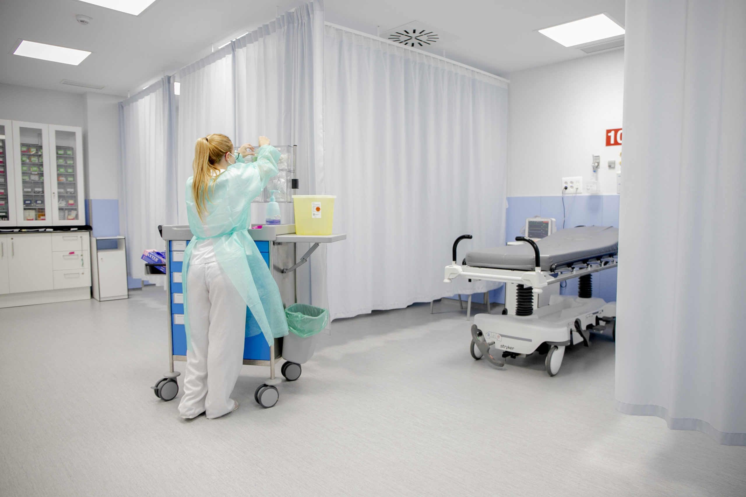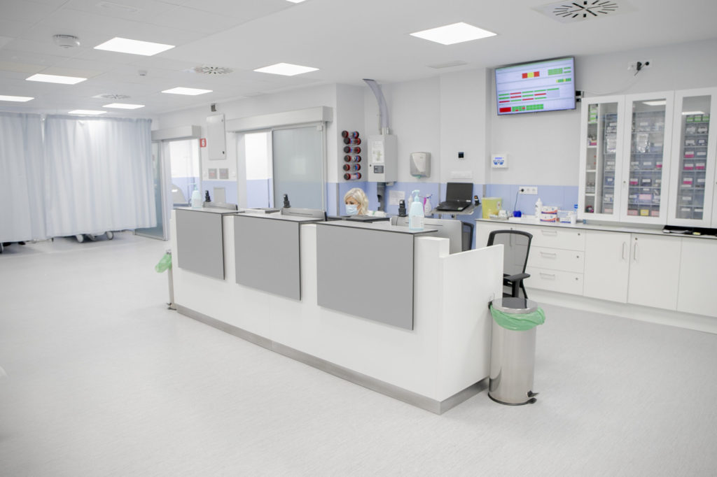 Una puerta automática separa el vestíbulo de la zona asistencial, donde se ha incrementado el número de boxes y se ha duplicado la capacidad de la zona de reanimación (REA). El equipamiento de la REA, como de todo el resto del área de Urgencias, es completamente nuevo, y el de control de Enfermería permite monitorizar a distancia de forma individualizada las constantes de todos los pacientes. También se han dotado con nuevos equipos las dependencias de los profesionales sanitarios.