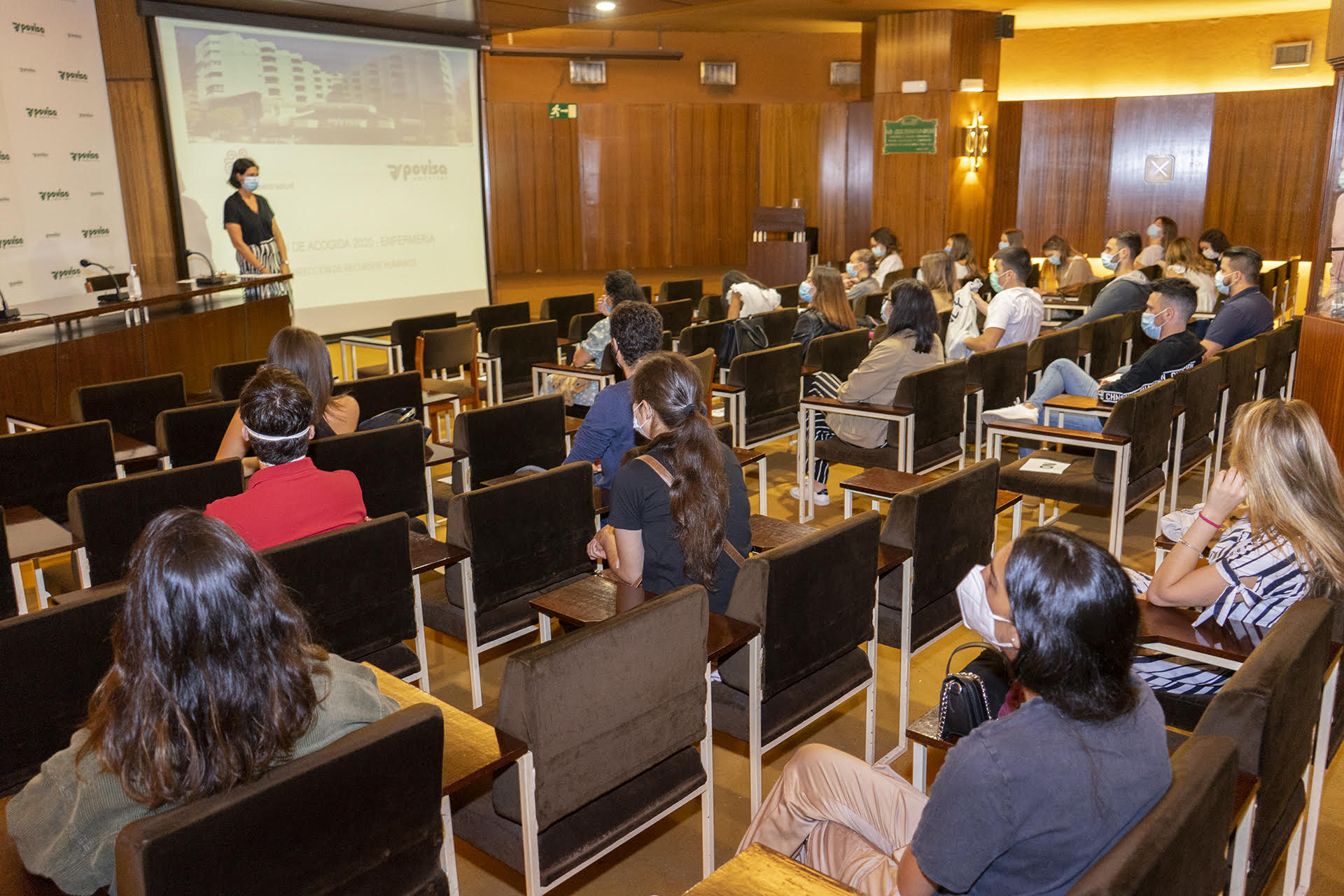 El hospital Povisa reforzará su plantilla a partir del 1 de julio con 30 auxiliares de clínica y 30 enfermeras y enfermeros recién titulados que desempeñarán su función en los distintos servicios del centro sanitario vigués. Este jueves se ha celebrado el acto de acogida de los nuevos trabajadores que, con el objetivo de garantizar las medidas de seguridad y distancia social, se ha dividido en dos ceremonias que han estado presididas por los responsables de los Servicios de Calidad, Valle Quintela; Prevención de Riesgos Laborales, Francisco Álvarez, y Selección, Susana Ruiz.