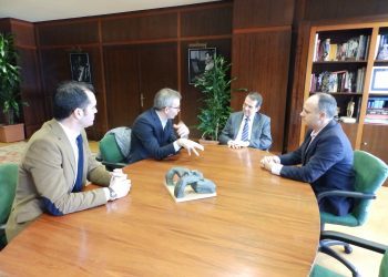 O presidente da Xunta, Alberto Núñez Feijóo, acompañado polo conselleiro de Economía, Emprego e Industria, Francisco Conde, mantivo este luns...