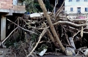 Dos días después y, tras los trabajos realizados para dejar paso en la carretera, la zona muestra el tamaño del...