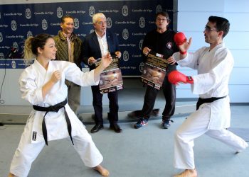 Acompañado polo presidente da Asociación Deportiva Zanshin, Fernando Álvarez, e os karatekas sénior Óscar Sánchez, Sheila Álvarez e Sergio Pérez,...