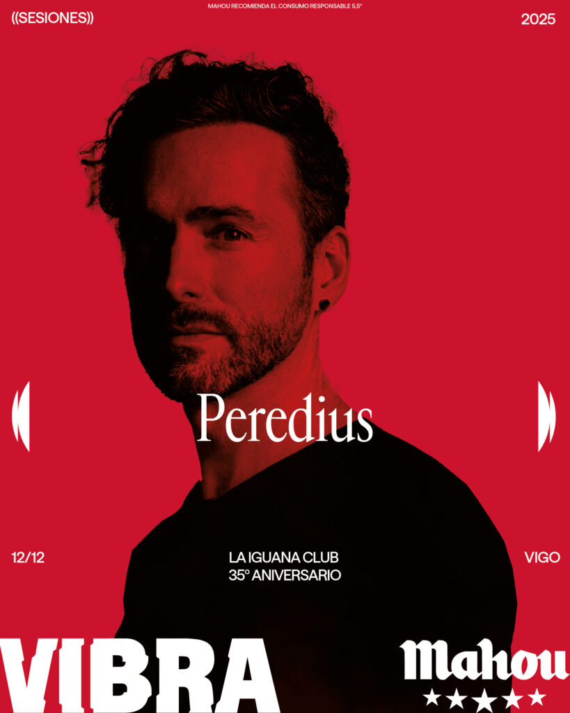Para esta Sesión Vibra Mahou de aniversario, el ritmo estará garantizado por Peredius, un artista polifacético que combina su labor como ingeniero de sonido, productor y músico. Conocido por su habilidad para adaptar la música al lugar y la hora, Peredius domina una técnica que mezcla con elegancia estilos como el pop, el rock, la electrónica, el disco y el house, siempre con el baile como denominador común.