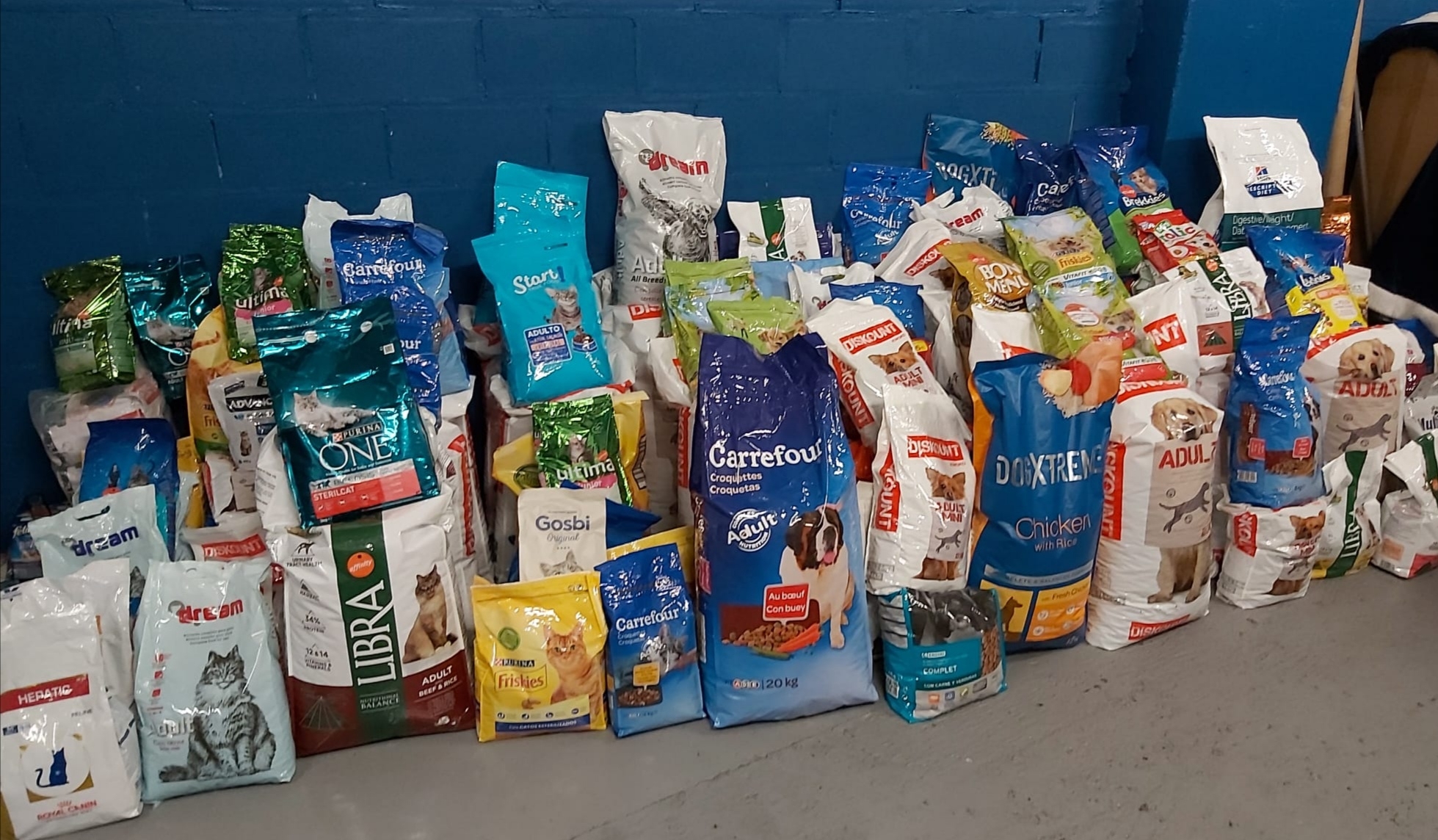 La gran recogida solidaria de alimentos para perros y gatos impulsada por el Centro Comercial Gran Vía de Vigo en diciembre ha logrado sumar más de 780 kilos de pienso, además de otras donaciones de materiales como pipetas, mantas, collares y correas. Todo ello irá a parar a cuatro protectoras de animales locales: Os Palleiros, Villa Peixiño, Asociación Cadeliños y Proyecto Gato.