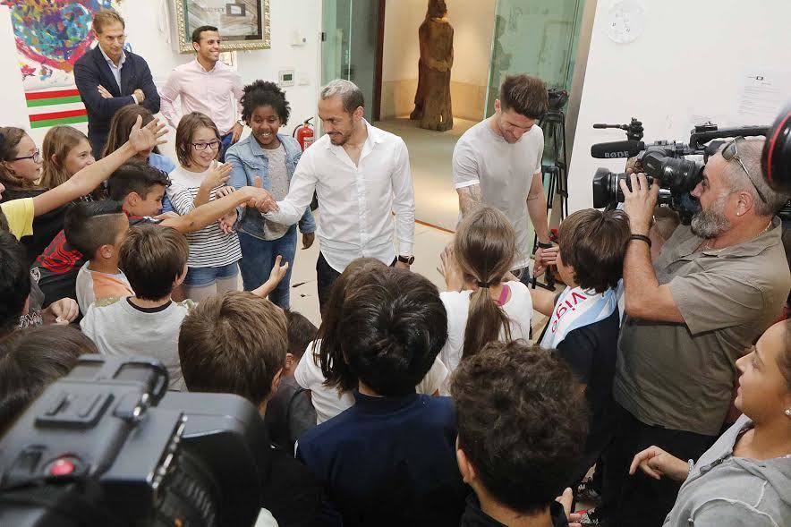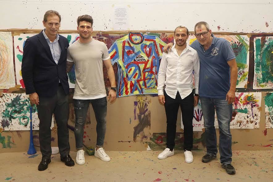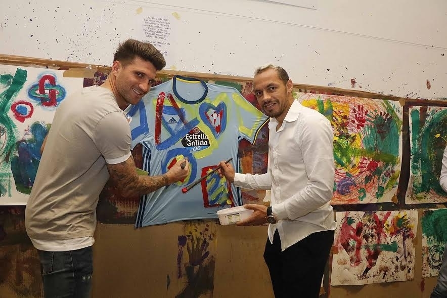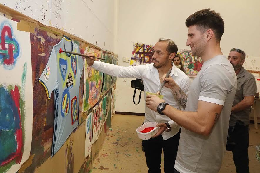 Durante la sesión de esta mañana los jugadores celestes atendieron a los más pequeños y posteriormente, junto al artista vigués Darío Basso, pintaron sobre una camiseta del RC Celta que será subastada este viernes en una cena benéfica que se realizará en el Círculo de Empresarios de Vigo en favor de las personas con síndrome Asperger.