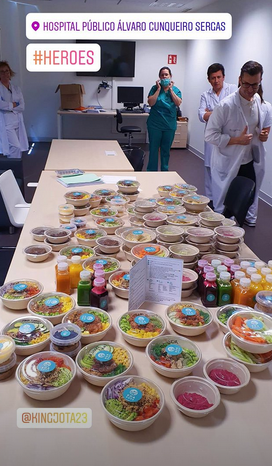 Para ejecutar la idea todavía entraría una tercera persona en juego: Ángel Piñeiro, ‘Gelo’, médico del Coruxo FC, que también ejerce en las Urgencias del hospital vigués. Él actuó de enlace para facilitar la llegada del envío de la mejor forma posible. Con la red de implicados ya tendida, el restaurante encendió los fogones y preparó 50 de sus ‘pokes’, 30 zumos naturales y entrantes variados. Comida y cena para ese día y, si alguno no pecó de glotón, incluso algo para el día siguiente.