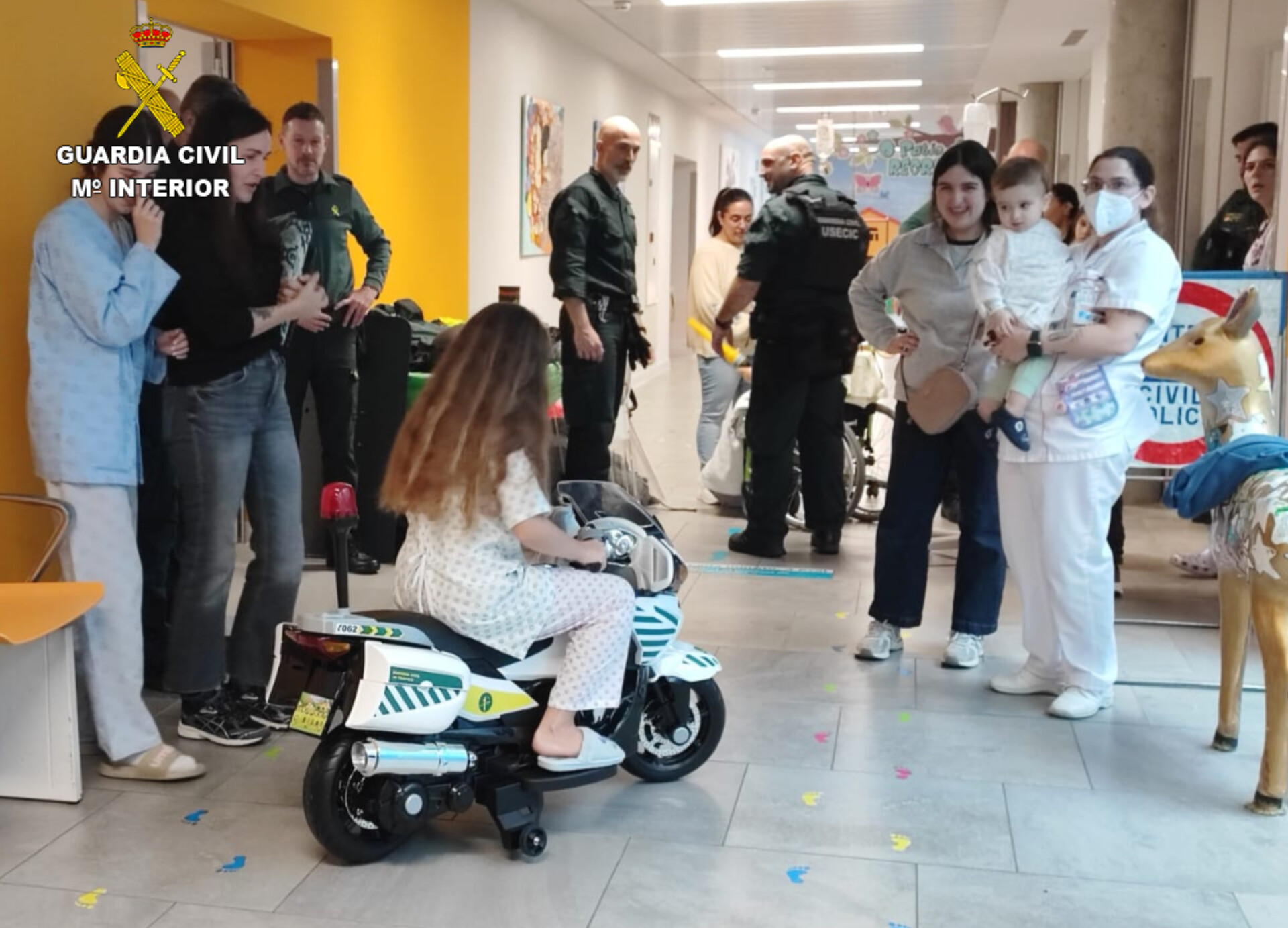 La Guardia Civil ha realizado este viernes una visita institucional a los niños que se encuentran ingresados en la Unidad de Pediatría del hospital Álvaro Cunqueiro de Vigo.