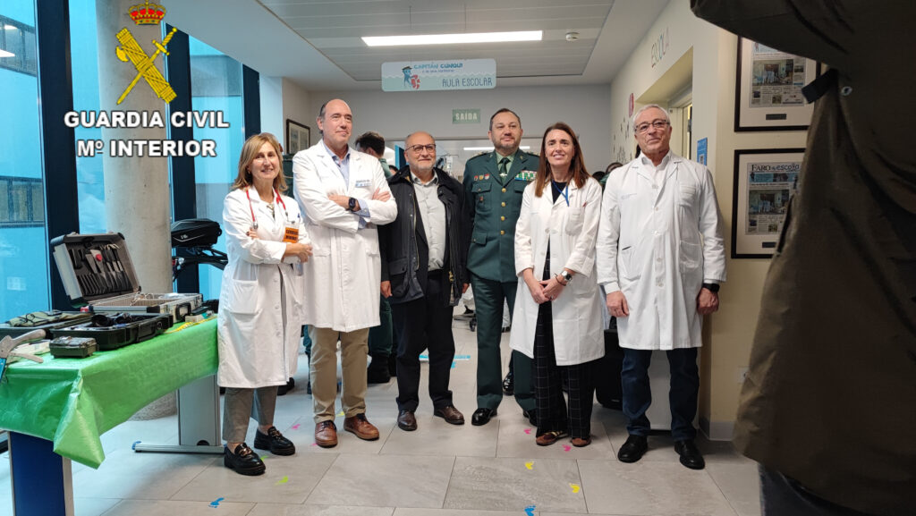 Allí, los agentes estuvieron acompañados del subdelegado del Gobierno, Abel Losada, el gerente del Centro Hospitalario, Doctor Francisco Javier Puente Prieto, la jefa del Servicio de Pediatría, Doctora Ana Concheiro, la jefa de hospitalización pediátrica, Doctora Mar Portugués y el Coronel jefe de la Comandancia de la Guardia Civil de Pontevedra D. Manuel Touceda.