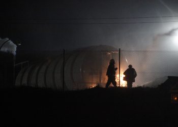 Los bomberos, esta noche ante el deposito de gas. / Foto:SelikaUn incendio declarado a medianoche de este martes en el ...
