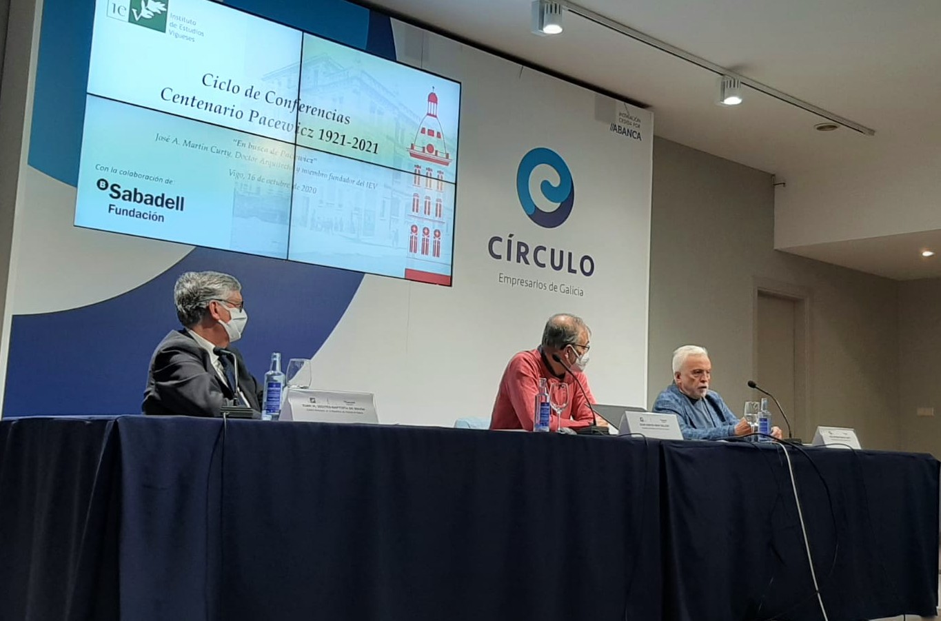 Curty, arquitecto vigués y miembro fundador del Instituto de Estudios Vigueses, abrió este viernes en el auditorio del Club Financiero el ciclo de conferencias dedicado al genial Pacewicz con motivo del centenario de su fallecimiento el próximo mes de febrero. En una sala de aforo reducido por las medidas covid, el autor de la obra biográfica más extensa del arquitecto («Pacewicz, arquitecto vigués», Colegio Oficial de Arquitectos de Galicia, 1992) ofreció una clase magistral sobre la vida y obra del discípulo de Paul Abadie.