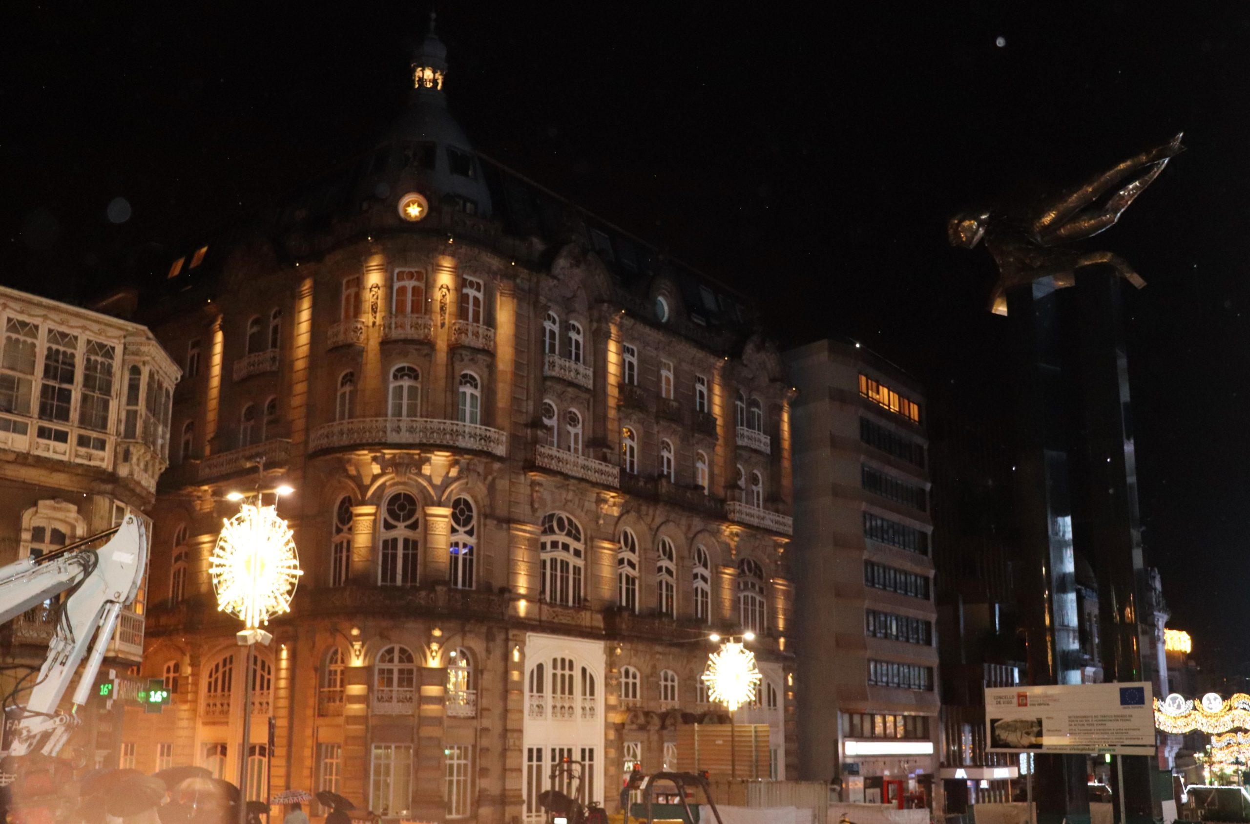 En un acto sencillo, sin estridencias, se encendieron las luces que alumbran el Moderno. El edificio, ejemplo del mejor eclecticismo del siglo XIX en la ciudad, es conocido popularmente por haber albergado durante mucho tiempo una instalación hotelera. En este edificio, levantando en 1897 en el número 1 de lo que hoy es Policarpo Sanz, se mezcla magistralmente el eclecticismo parisino del autor con el trabajo de los canteros locales.