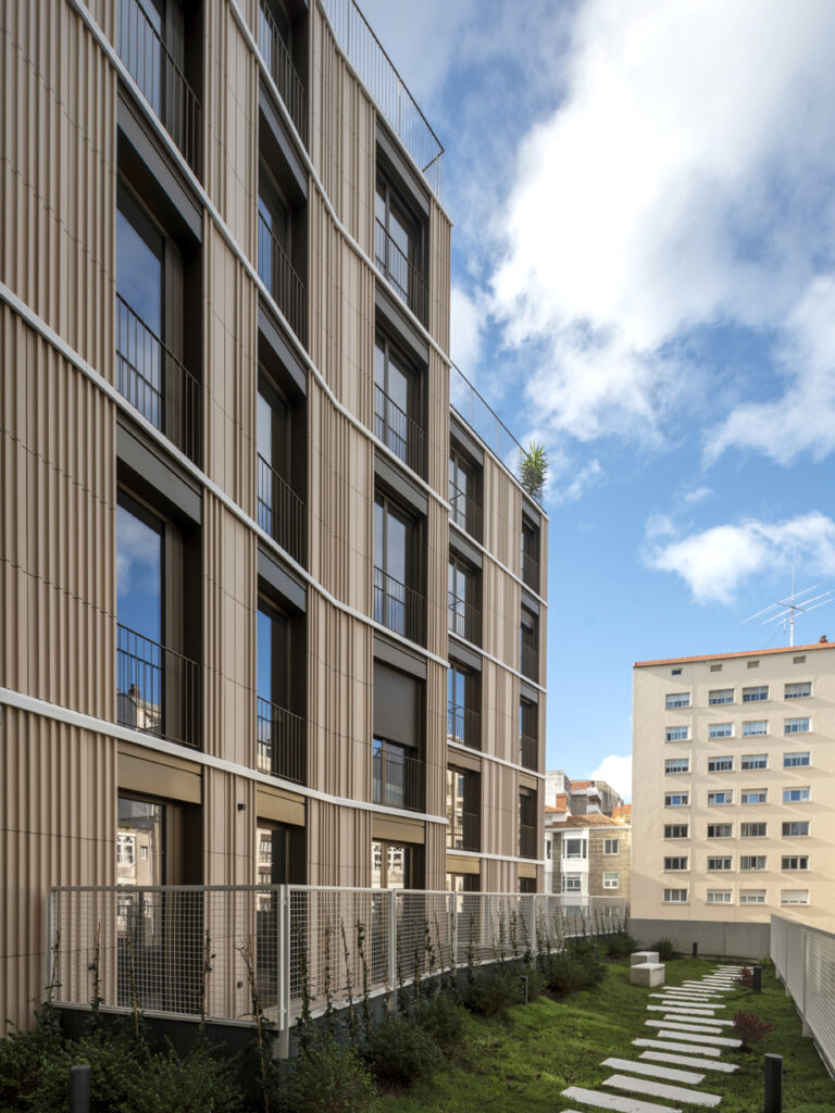 La organización del edificio alrededor de un único patio-paisaje «crea un interior luminoso y continuo que introduce la naturaleza en el corazón del proyecto», destacan desde el COAG. Además, la disposición pasante de las viviendas, abiertas tanto a la calle como al patio, es otro de los aspectos que resaltan al «proporcionar calidad espacial, ventilación natural y una relación enriquecida con el exterior, alcanzando una integración ejemplar entre memoria y contemporaneidad».