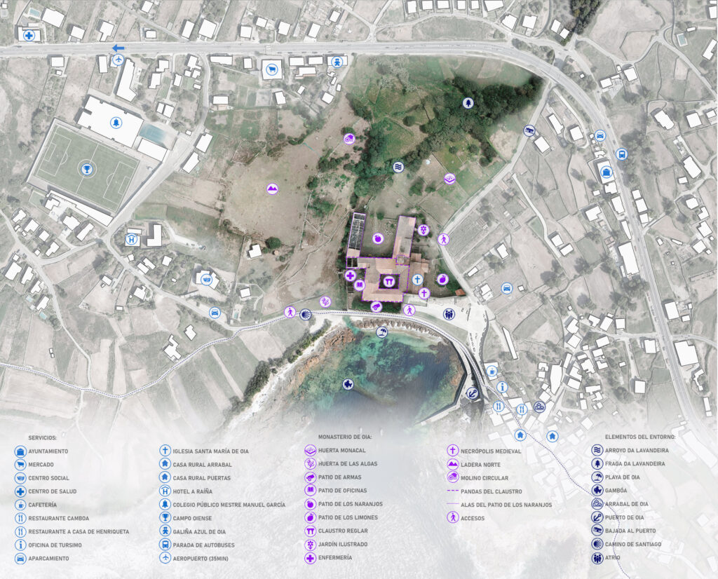 Mientras, en el área de Vigo, los premios llegan a Oia y Mondariz. En el primer caso se trata de la ordenación del recinto monacal y encuentro costero del Real Mosteiro de Oia, de los arquitectos Rodríguez y Pintos Arquitectos y Santiago Pintos Pena.