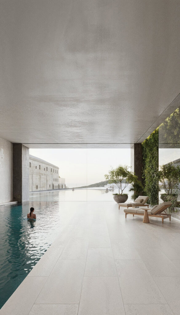 En este caso, los proyectistas buscaban articular un modelo de «triple sostenibilidad». Ambiental, recuperando técnicas pasivas tradicionales para minimizar el impacto ecológico. Social, abriendo el monasterio al pueblo para convertirlo en su epicentro cultural y vecinal, generando empleo local y dedicando casi 2.000 m² a uso público. Y económico, donde un hotel de 74 habitaciones, spa y restaurante generarán los recursos necesarios para la conservación perpetua del Bien.