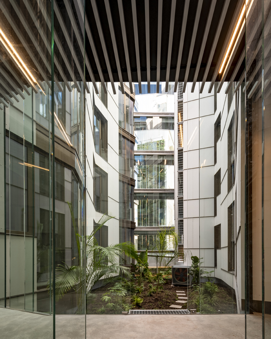 La organización del edificio alrededor de un único patio-paisaje «crea un interior luminoso y continuo que introduce la naturaleza en el corazón del proyecto», destacan desde el COAG. Además, la disposición pasante de las viviendas, abiertas tanto a la calle como al patio, es otro de los aspectos que resaltan al «proporcionar calidad espacial, ventilación natural y una relación enriquecida con el exterior, alcanzando una integración ejemplar entre memoria y contemporaneidad».