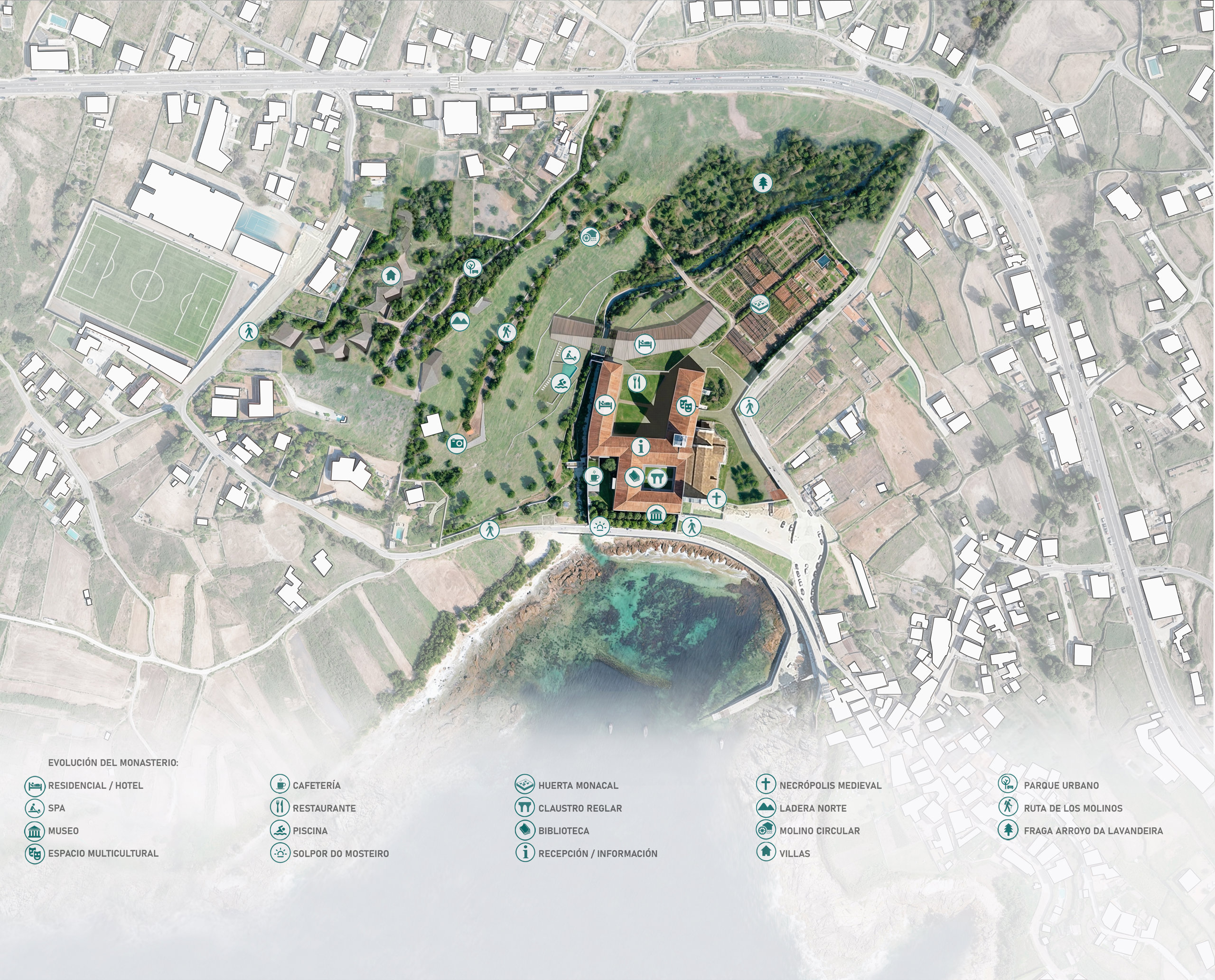 La propuesta ofrece una «visión integral», incorporando la totalidad del recinto —edificios, huertas, jardines y zona forestales— para «reinterpretar, desde criterios de sostenibilidad ambiental, social y económica, un ecosistema que combina conservación y nuevos usos compatibles con el lugar».