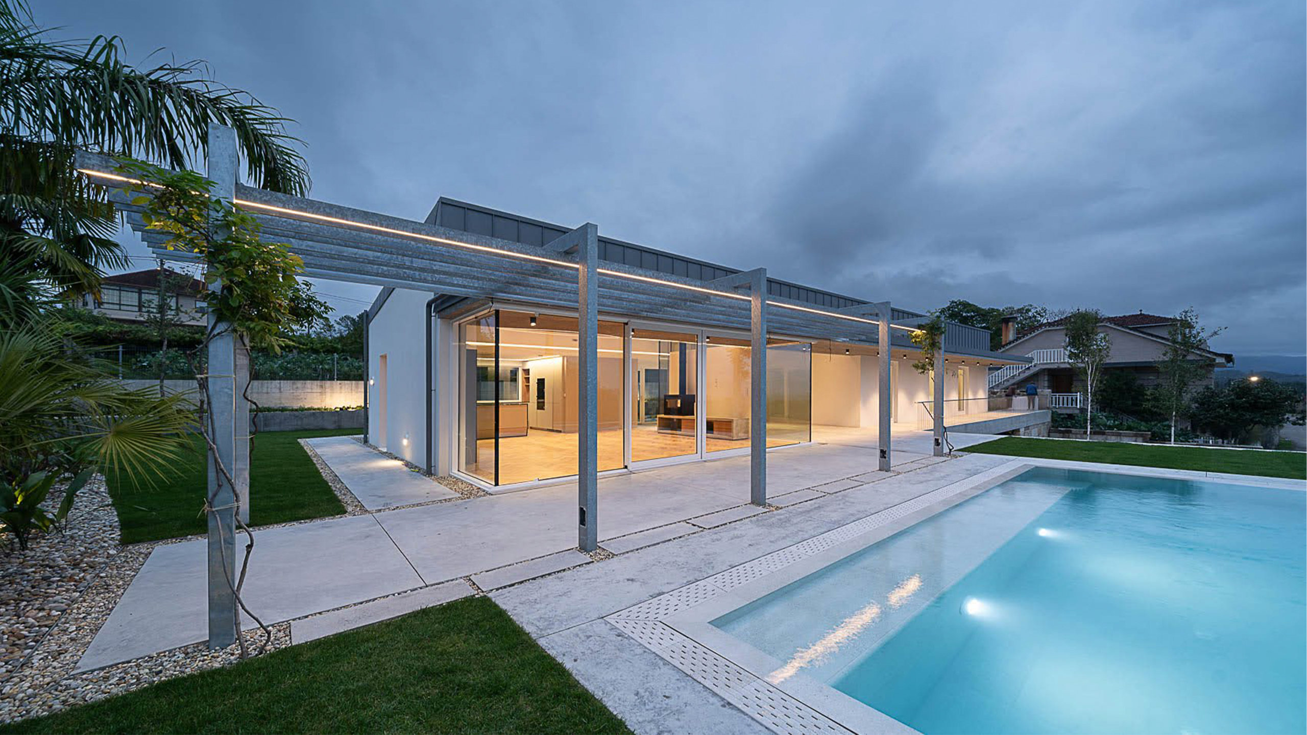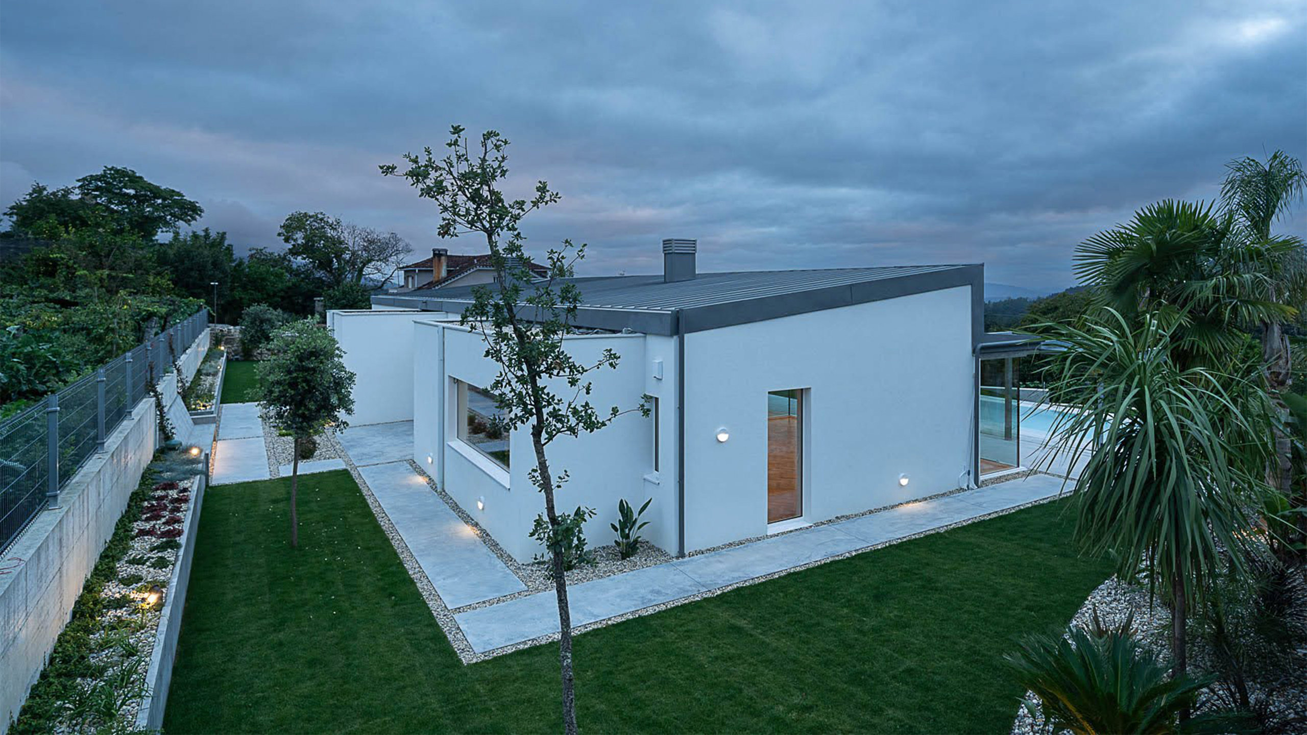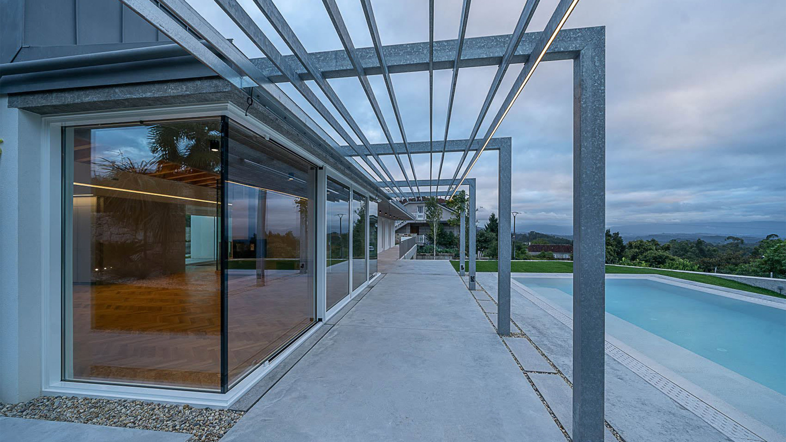 El empleo consciente de materiales y soluciones constructivas contemporáneas, ajenas al imaginario tradicional, se convierte aquí en un valor añadido, al contribuir a una integración respetuosa y honesta con el paisaje abierto en la que se inserta la vivienda.