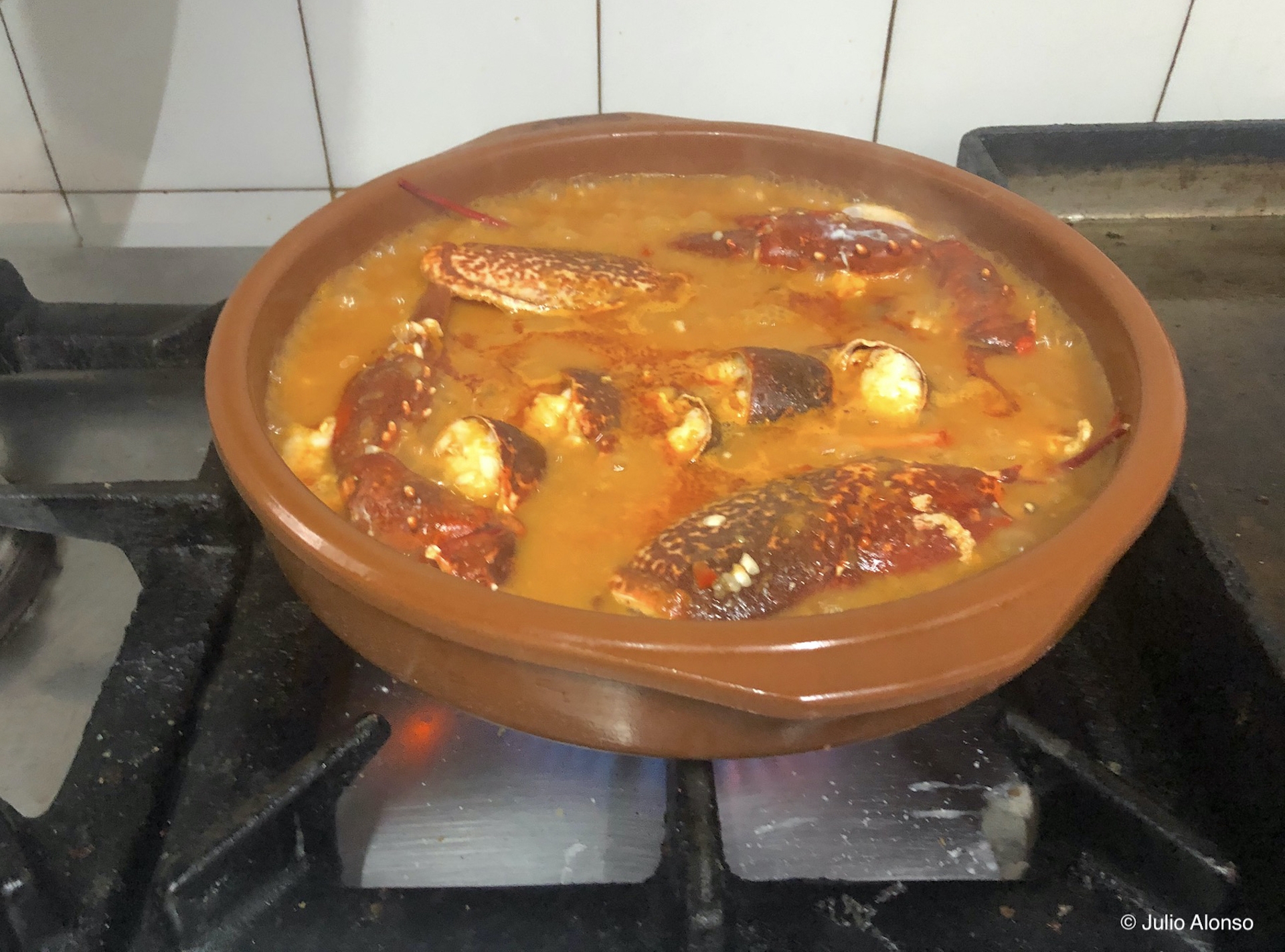 El bogavante es una auténtica delicia culinaria que se prepara de muchas maneras, algunas personas, acostumbradas a verlo ya preparado en el plato, desconocen que se cocina vivo. Sí, vivo, y lo venden con las pinzas atadas para evitar accidentes. Se sujeta por la espalda, se coloca sobre una superficie estable, preferiblemente una tabla de cocina, y con un cuchillo bien afilado —-y sin pensarlo demasiado—- se corta de un solo golpe por mitad de la cabeza abriéndolo a lo largo de su cuerpo. Luego se continúa con su elaboración según cada receta. En la tapería El Grillo, en el número 20 de la Rúa Álvaro Cunqueiro, de Vigo, preparan el bogavante gallego con arroz con gran maestría, resultando una textura y un sabor indescriptibles. Un placer muy recomendable que justifica sobradamente su precio.