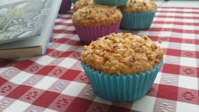 Repartimos la masa cuidadosamente en nuestras cápsulas de papel para magdalenas, sin llenarlas más de dos tercios para que no se nos derramen al hornear. Si nos gusta, podemos poner por encima un poco crocanti de almendra.